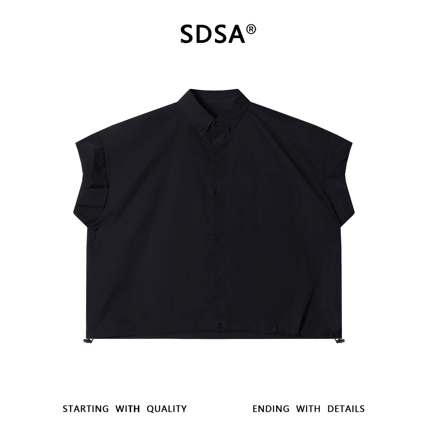 SDSA男装2026新款高贵轻奢无袖阔版扣领衬衫宽松落肩休闲上衣