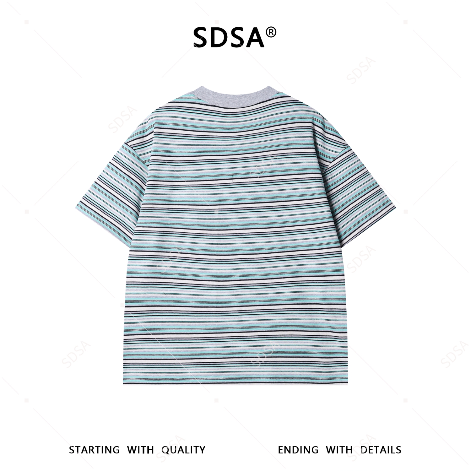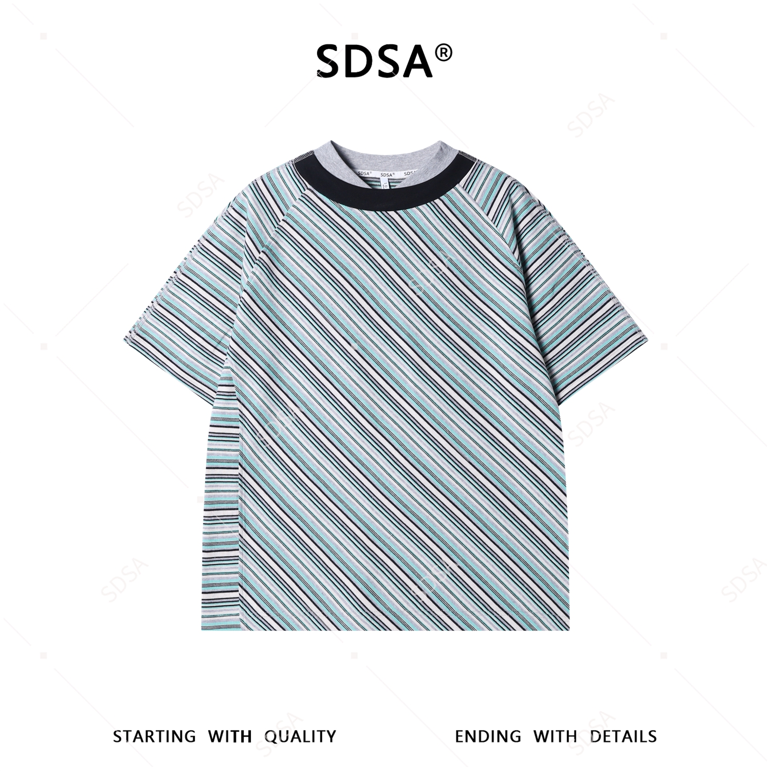 SDSA男装2026新款轻奢老钱风简约撞色斜纹短袖T恤领口拼接百搭