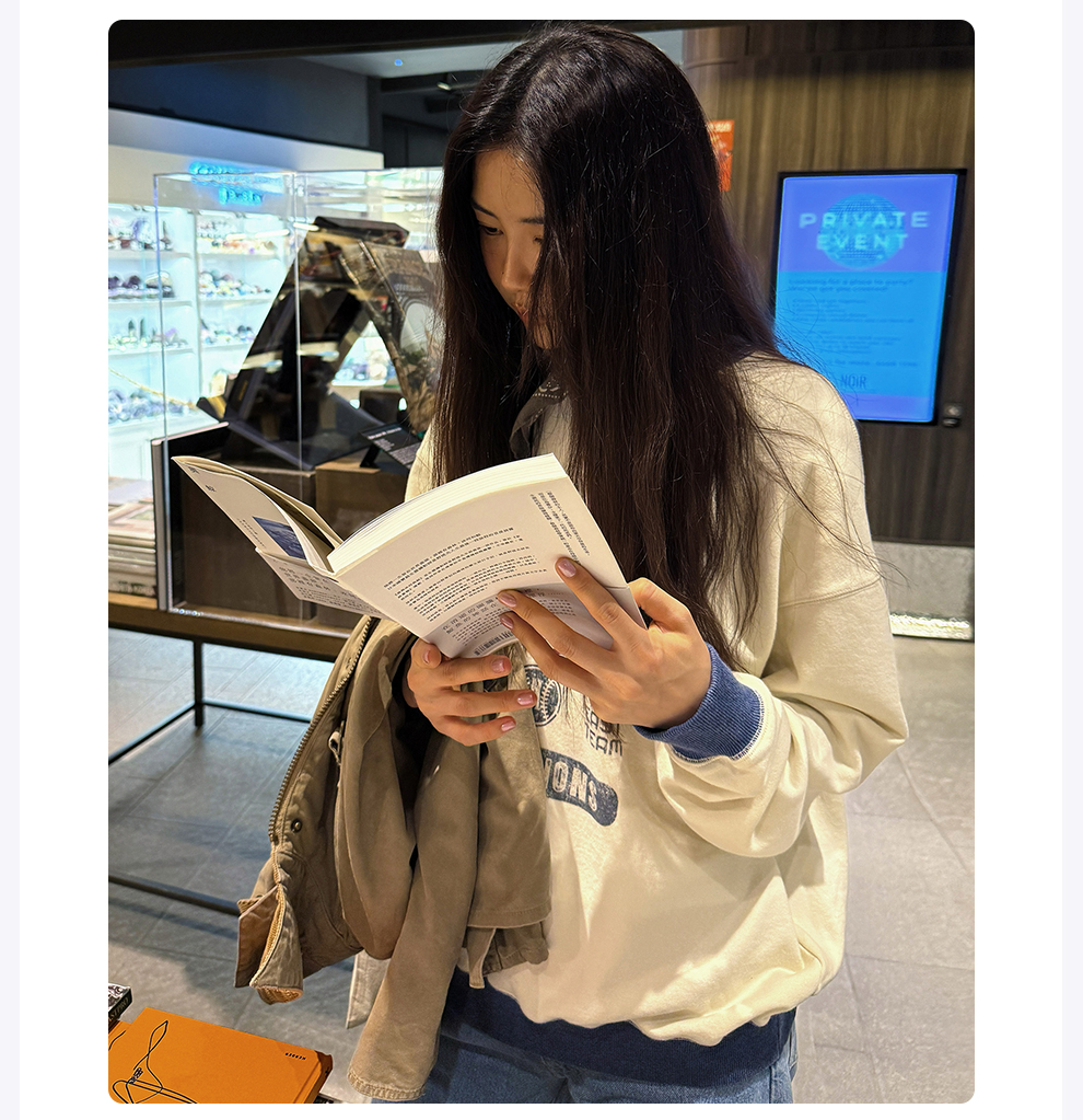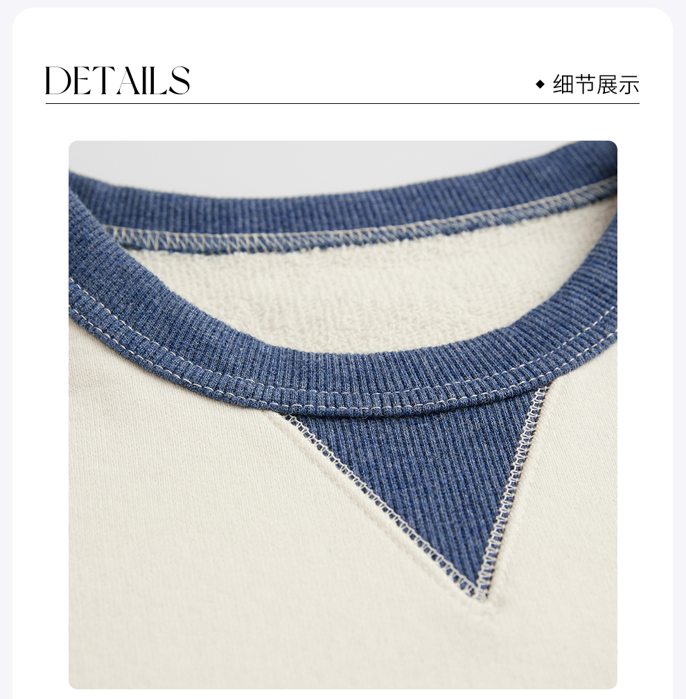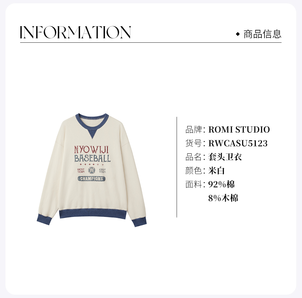 ROMI STUDIO“美式复古”纯棉撞色罗纹印花宽松套头卫衣RWCASU5123