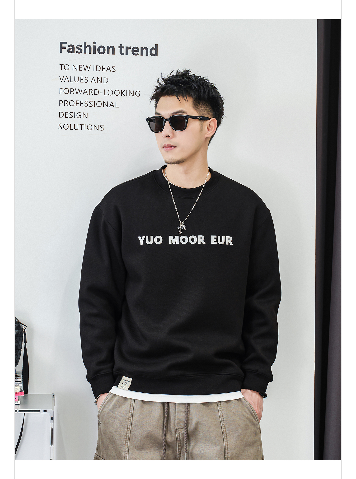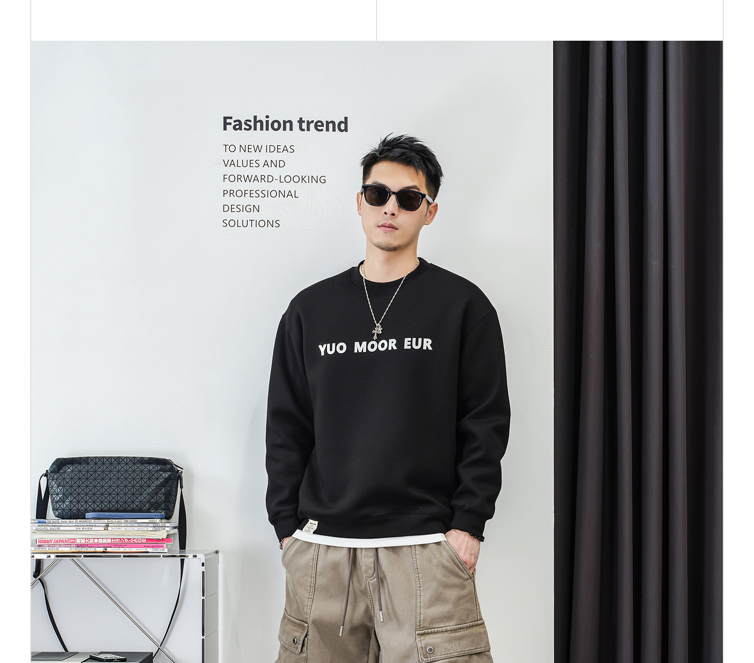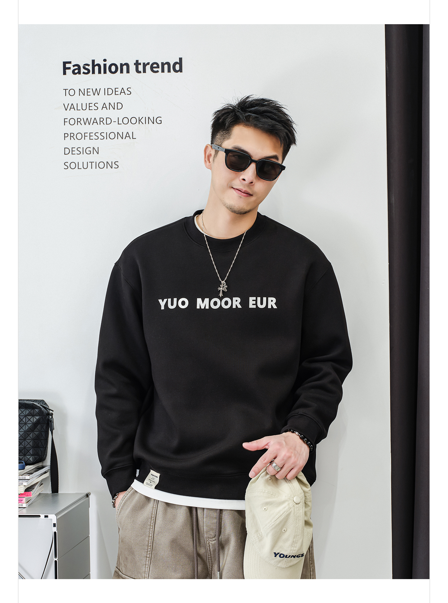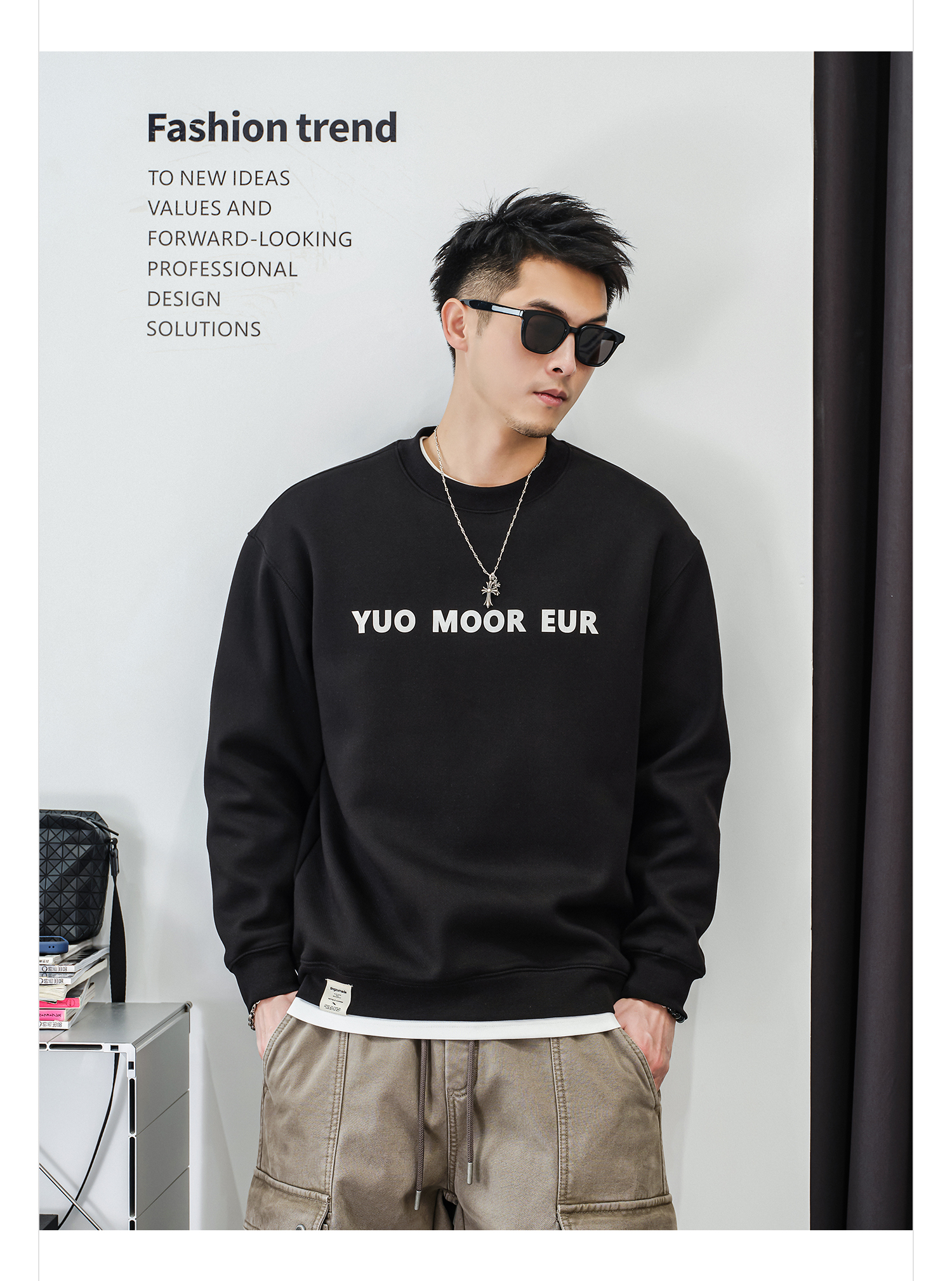徐太浪【一体绒 字母印花】加绒卫衣男秋冬款大码内搭打底衫上衣