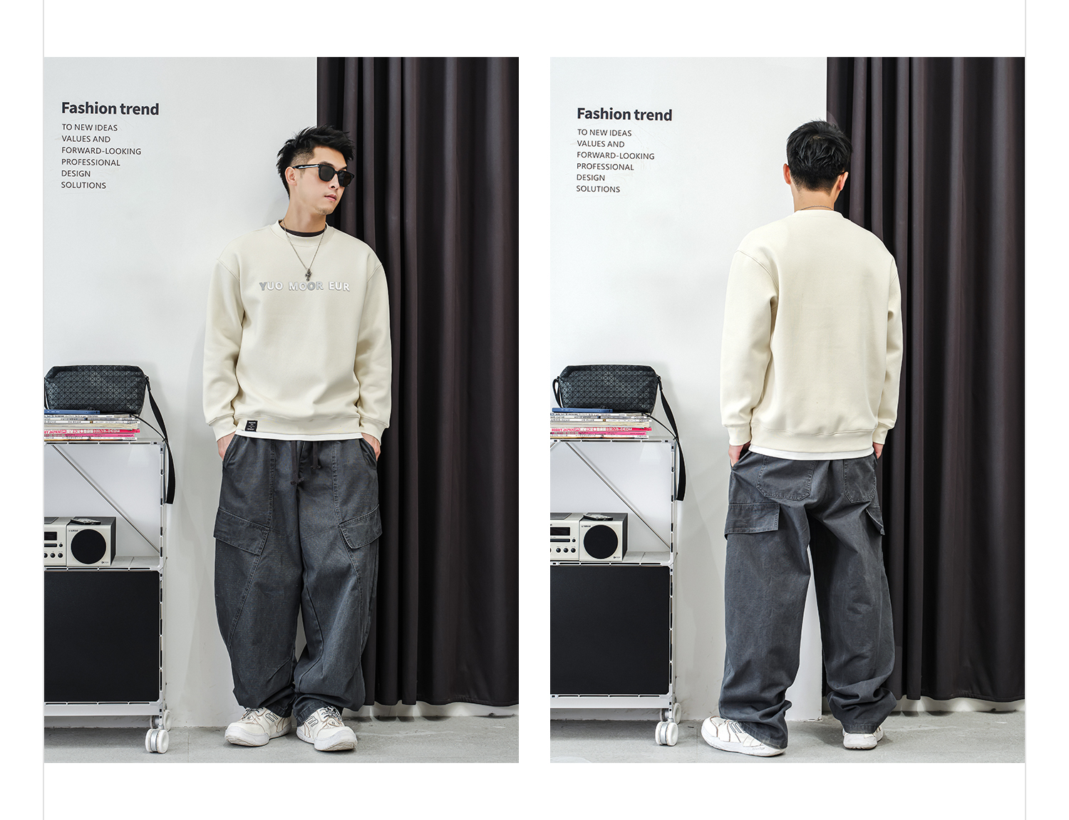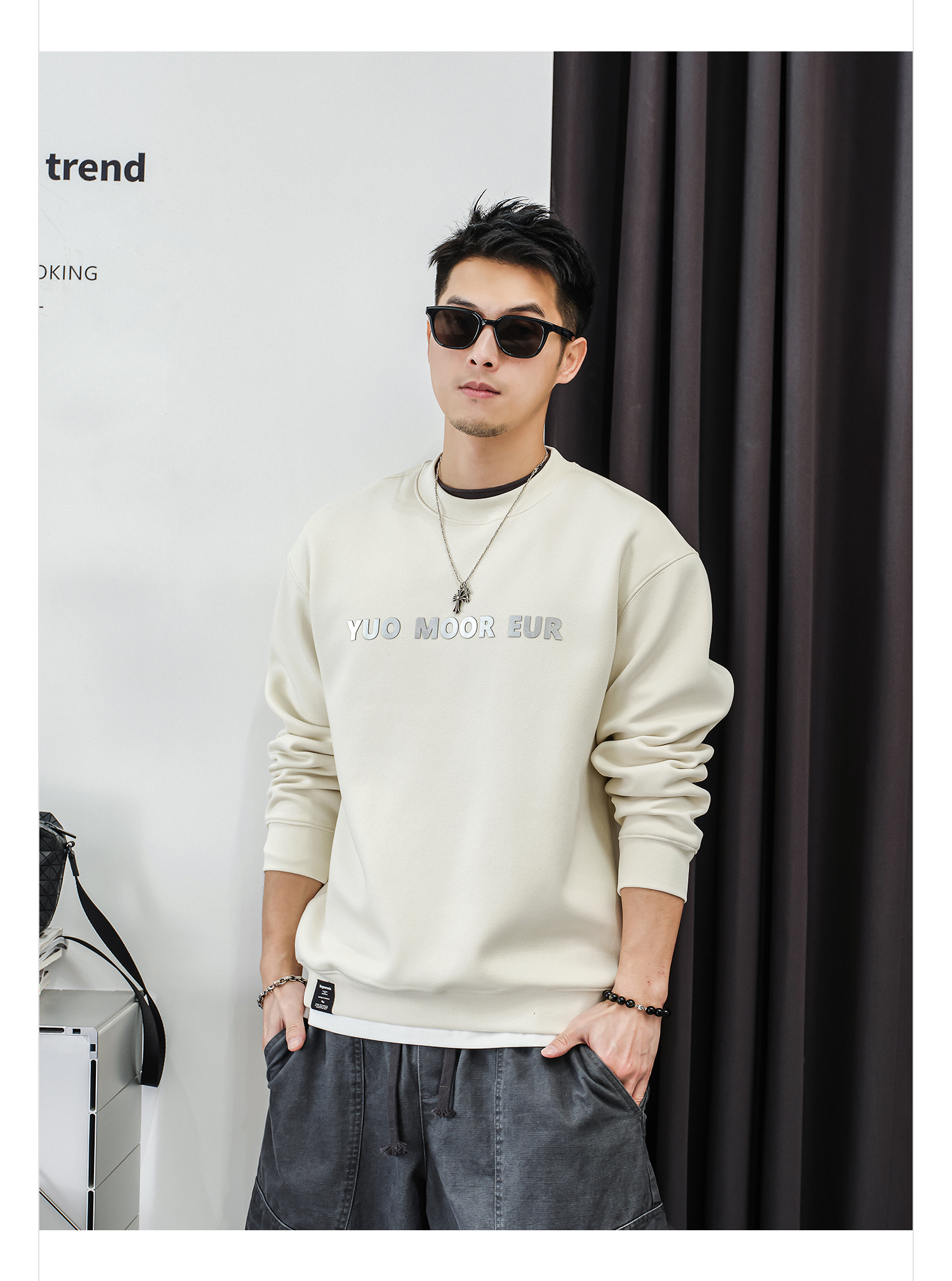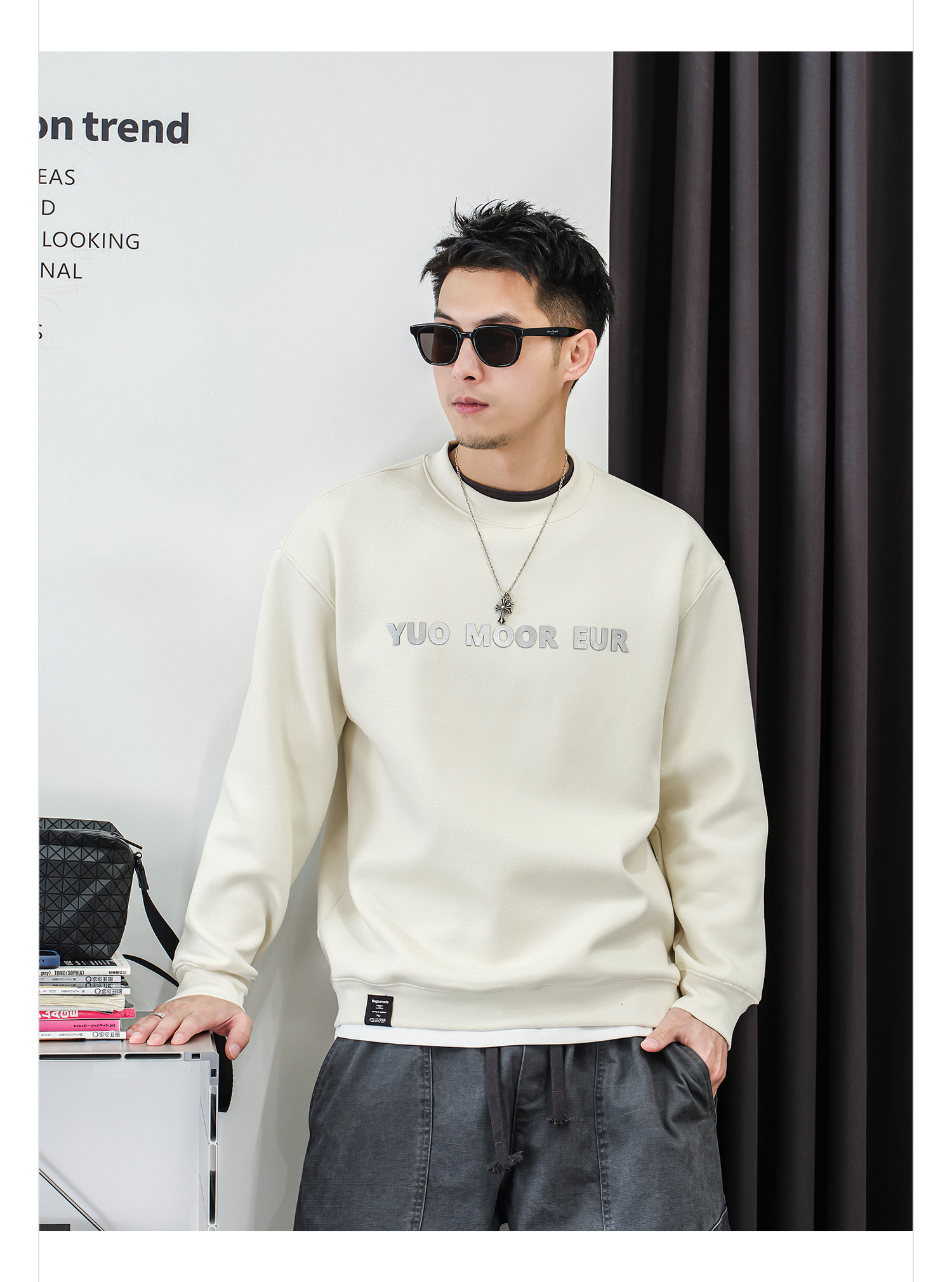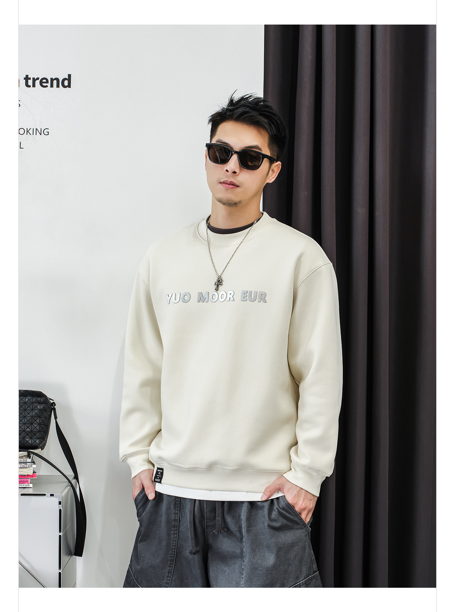 徐太浪【一体绒 字母印花】加绒卫衣男秋冬款大码内搭打底衫上衣