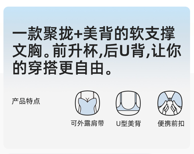 幸棉 小胸聚拢显大薄款前扣上托性感美背内衣 无钢圈无痕文胸罩女