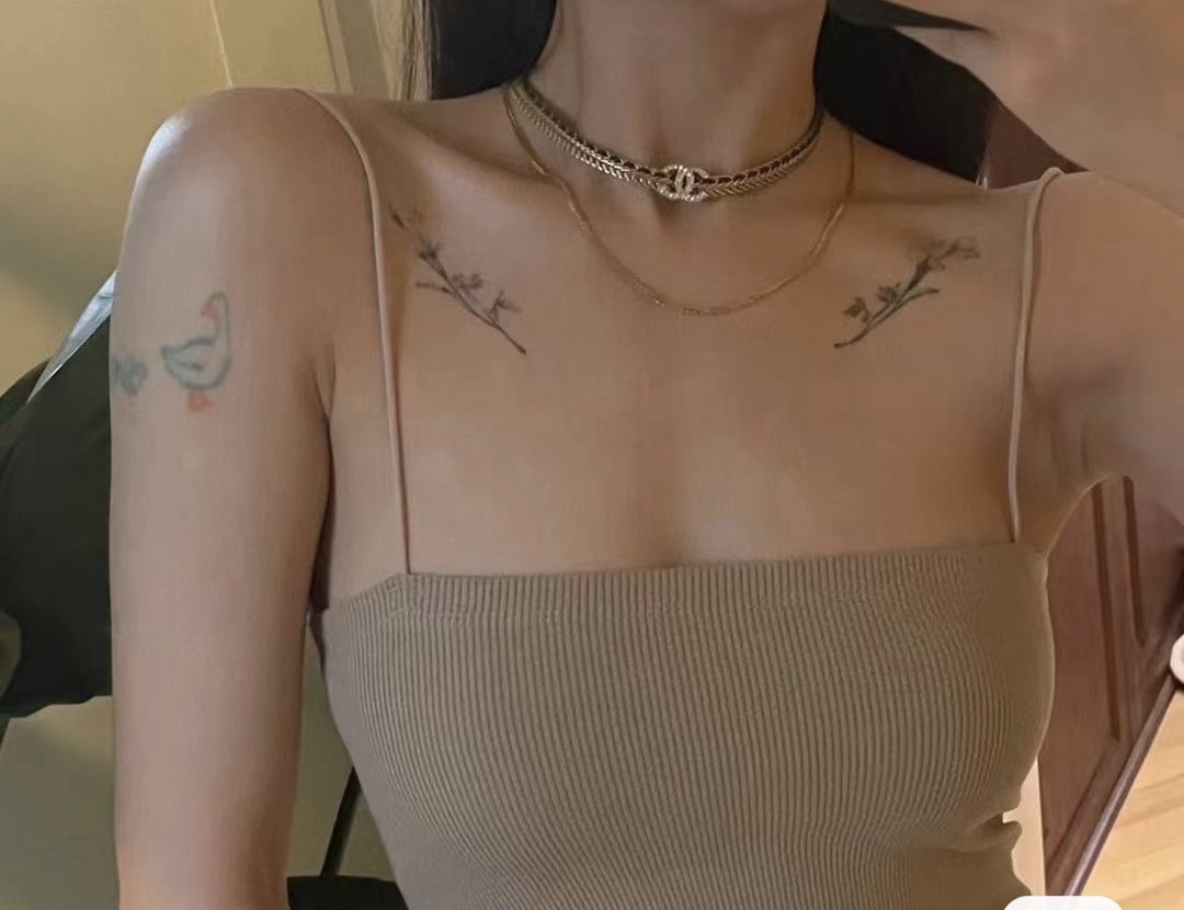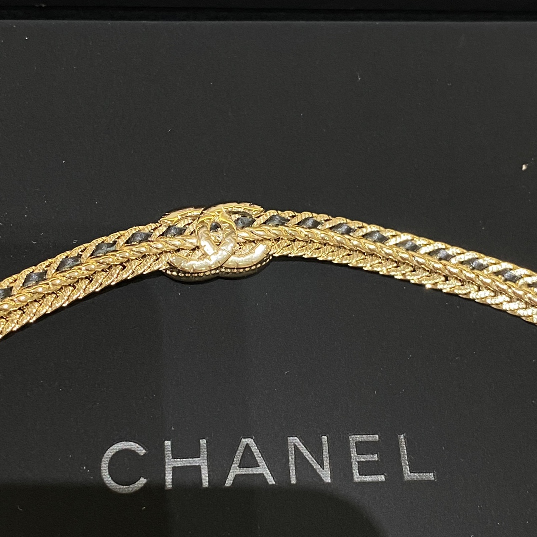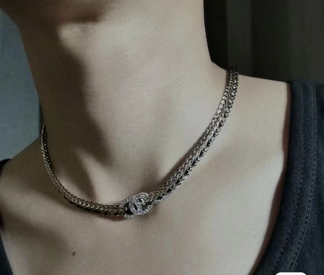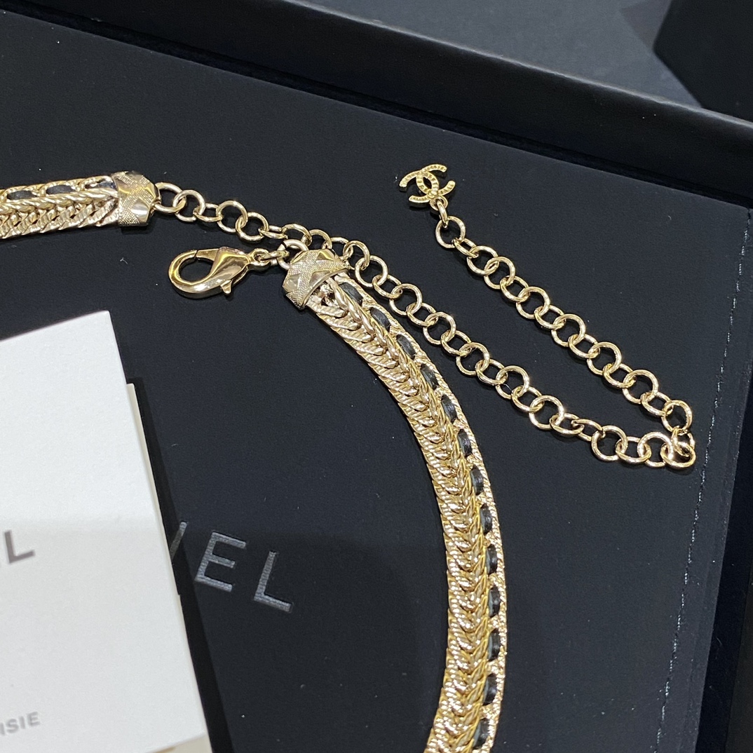 现货 水钻C黑色穿皮链条项链