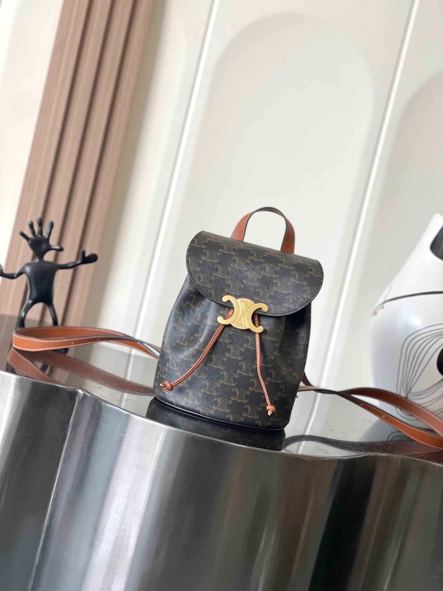 CELINE BONNIE光滑牛皮革背包,羊皮革衬里,手提、双肩背和单肩背,TRIOMPHE磁扣,抽绳皮革系带,皮革提手 ,长度8cm