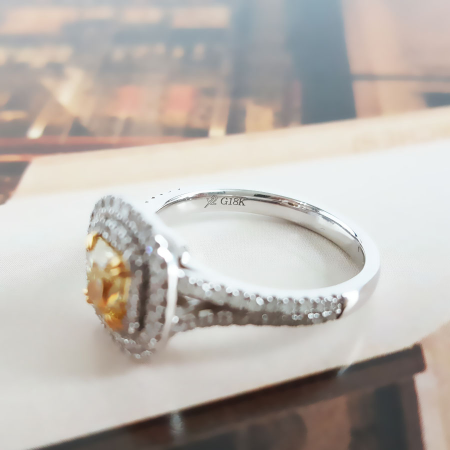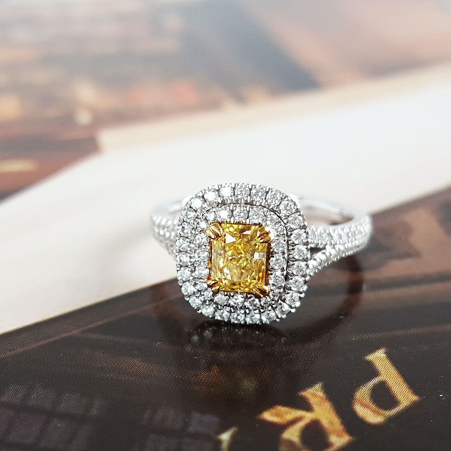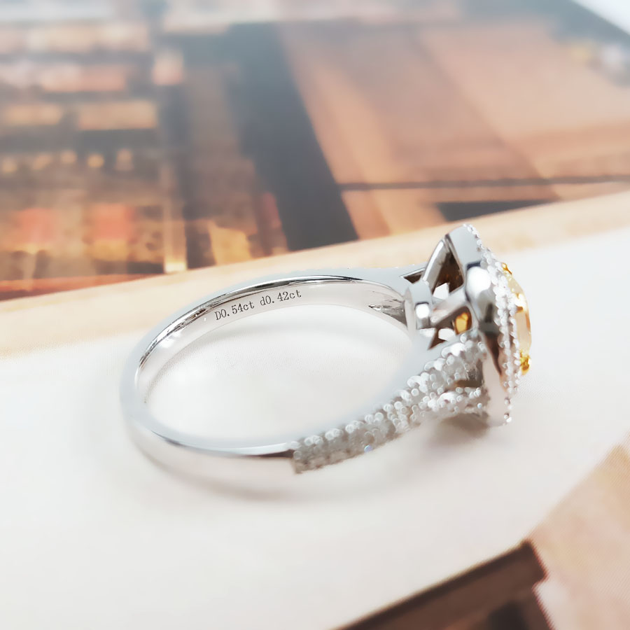 款式 | AU750白金百搭时尚设计师款雷蒂恩型0.54克拉浓彩黄黄钻戒指 |