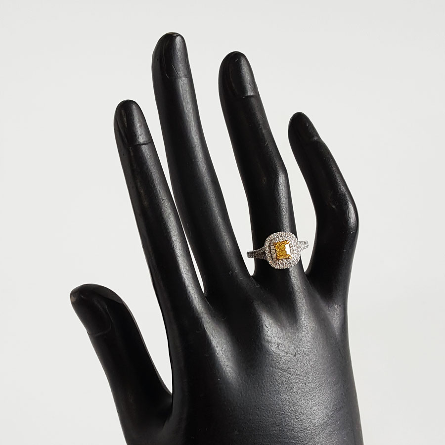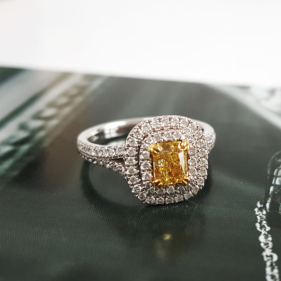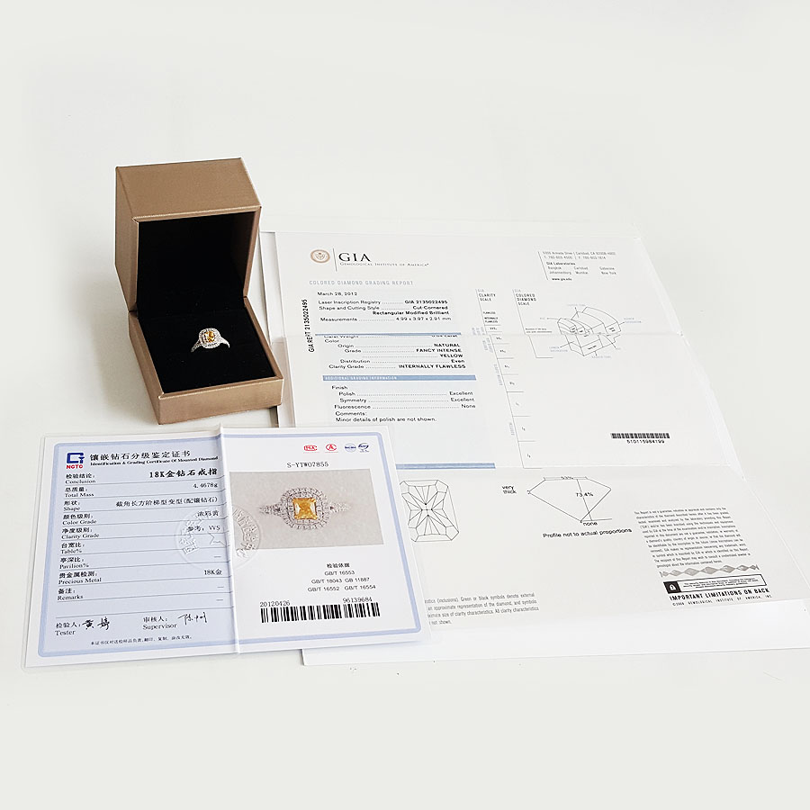 【天然正品】AU750白金百搭时尚设计师款雷蒂恩型0.54克拉浓彩黄黄钻戒指11号(戒圈可改)300326NJS35
