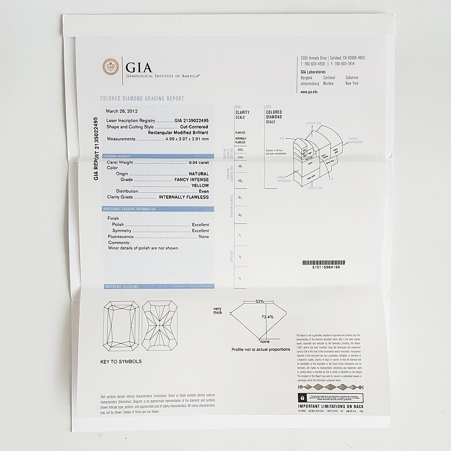 主石重量 | 0.54克拉(GIA:2135022495) |