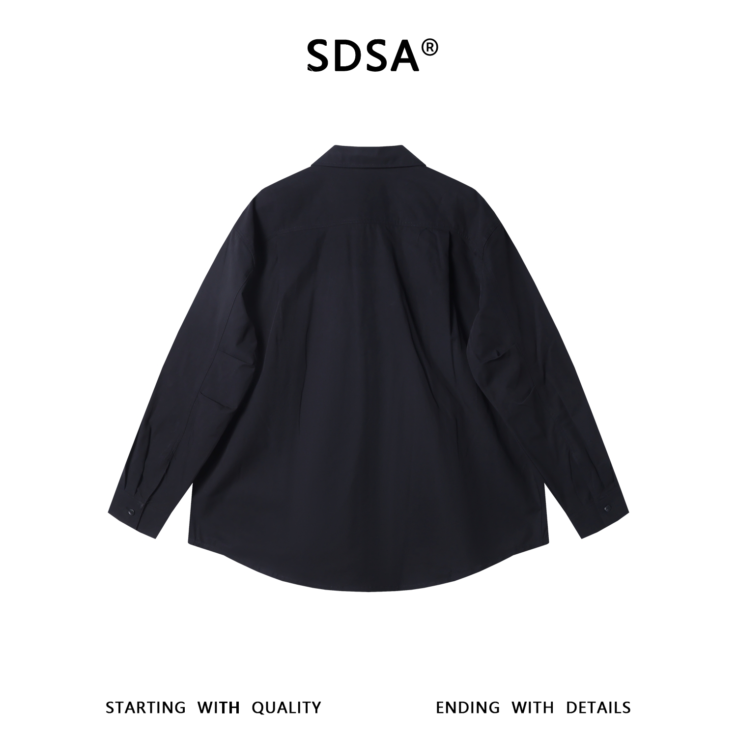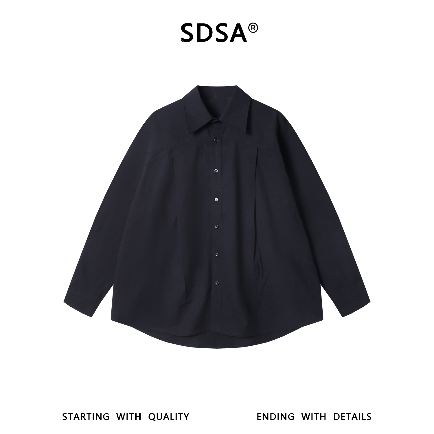 B8051SDSA秋冬新款痞帅男装韩版简约纯色褶皱翻领长袖衬衫百搭宽松衬衣