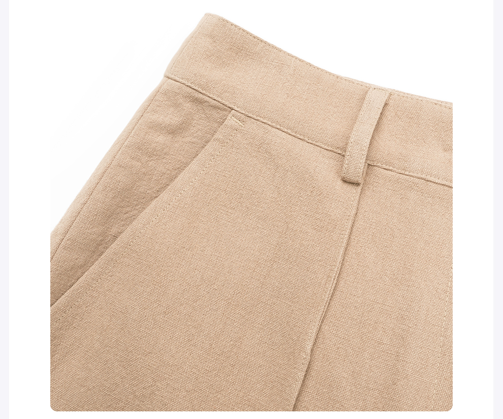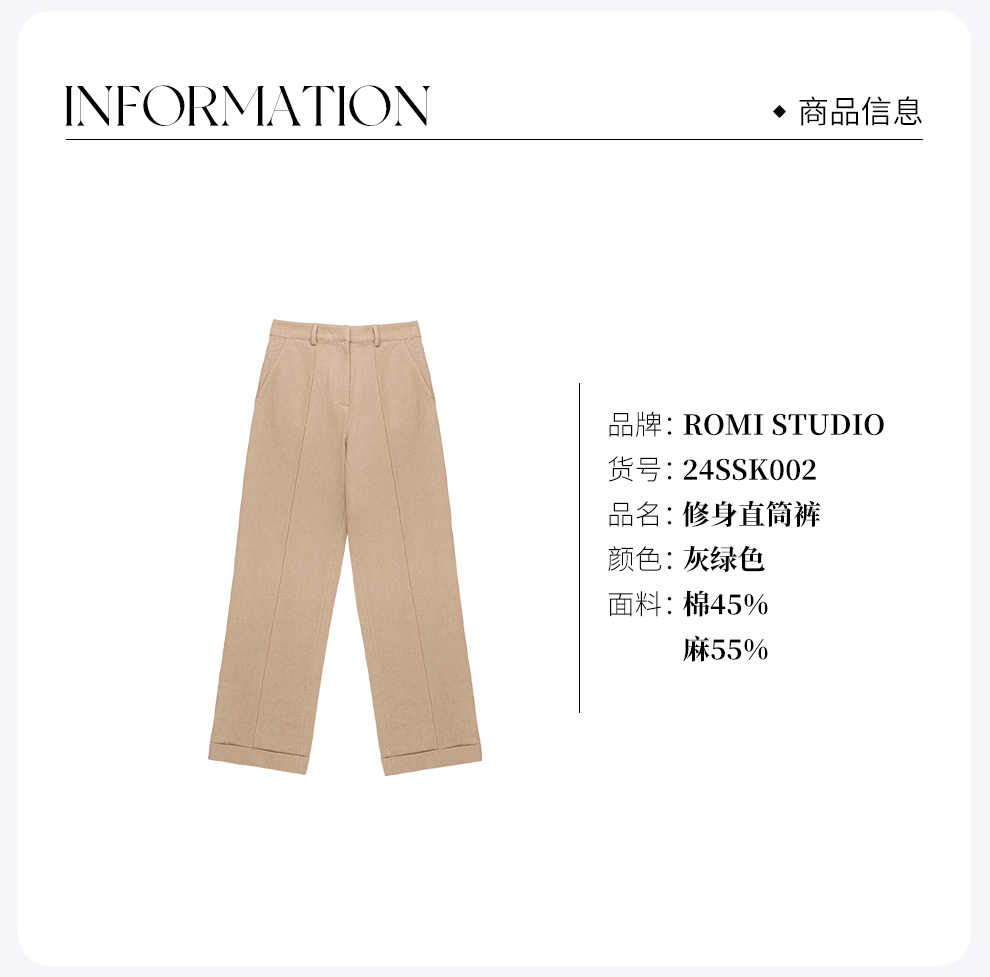 ROMI STUDIO“法式贵妇”棉麻高腰直筒修身灰绿色直筒裤24SSK002