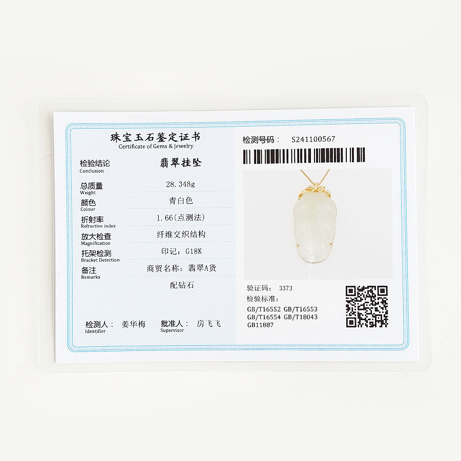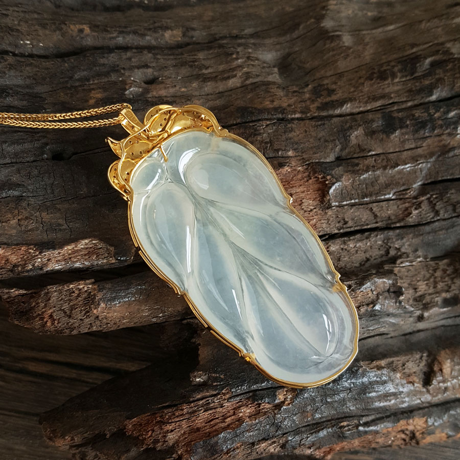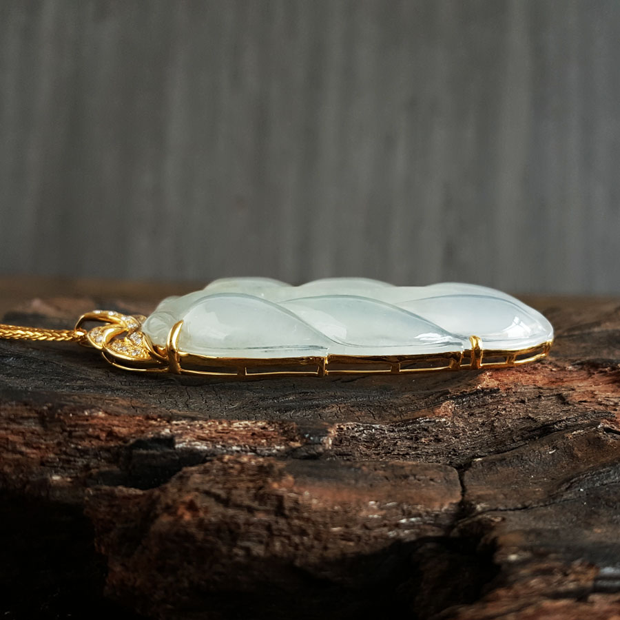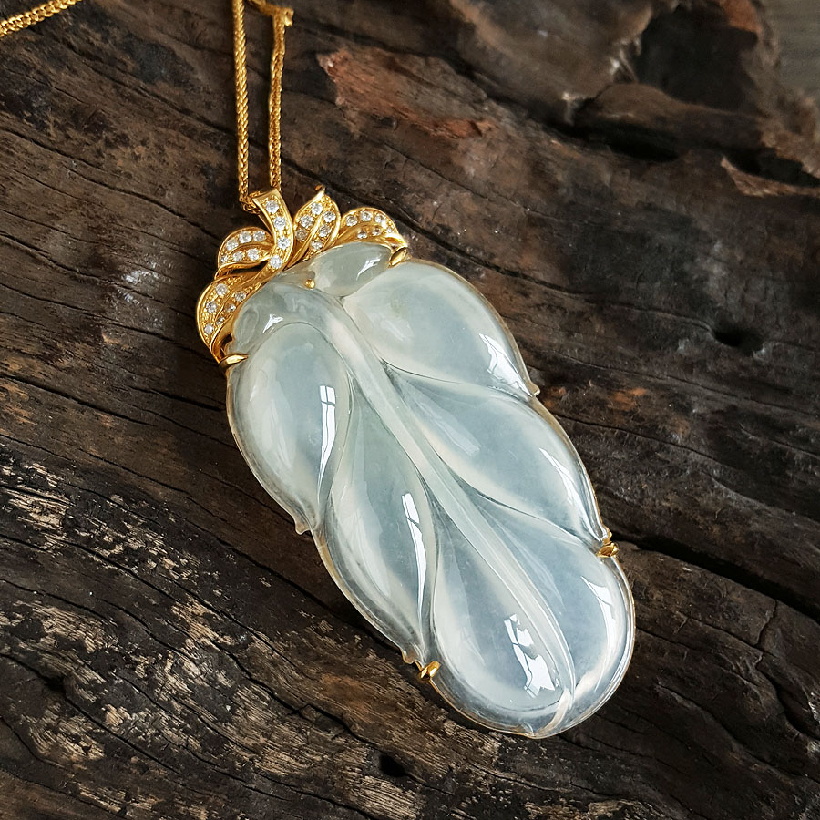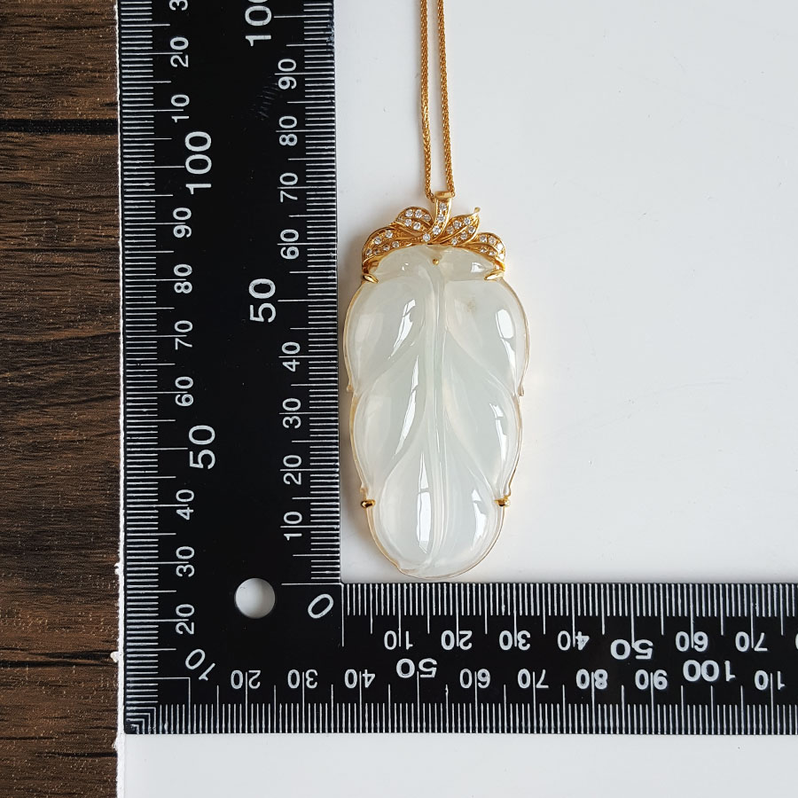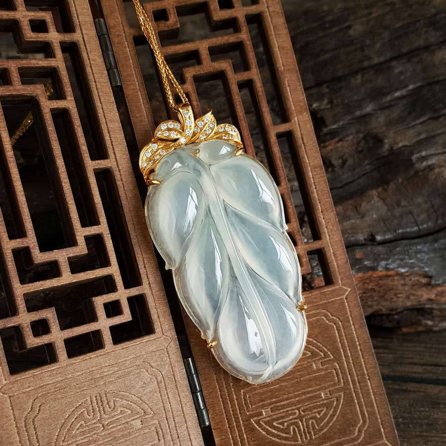名称 | AU750收藏级黄金镶钻镶天然冰种叶子翡翠(金枝玉叶)吊坠项链 |