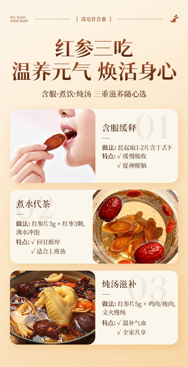 【红参袋泡茶】80g/罐 人参原支参 蒸制工艺/无糖/无硫