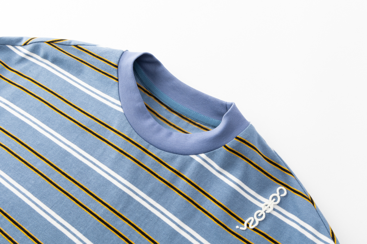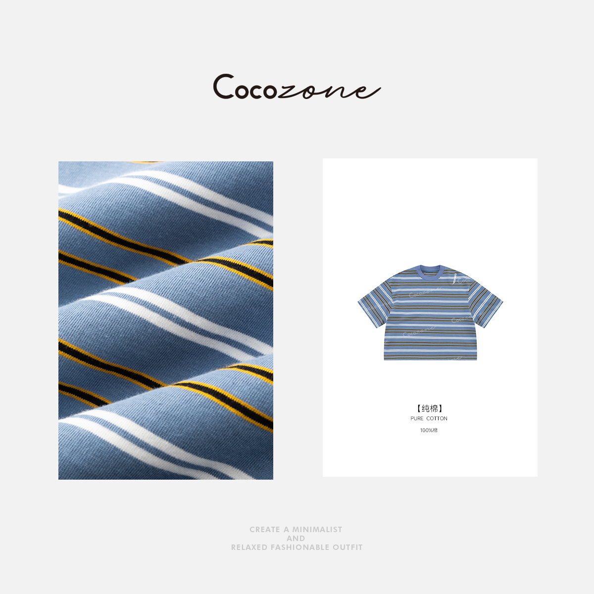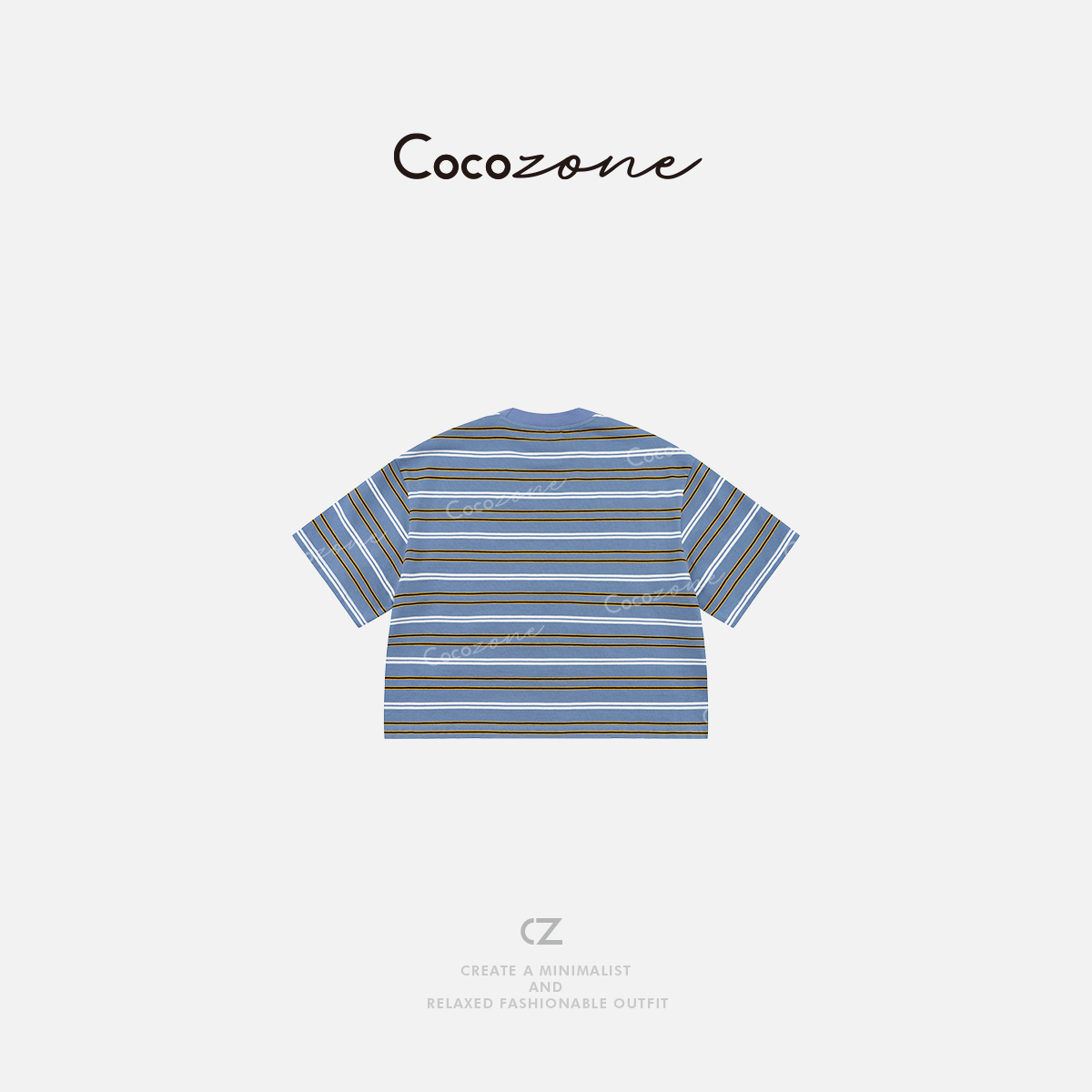 COCO ZONE 100棉美式条纹撞色圆领短袖T恤CD1A0137