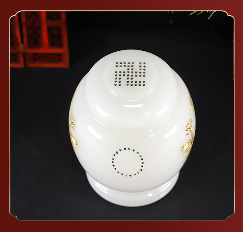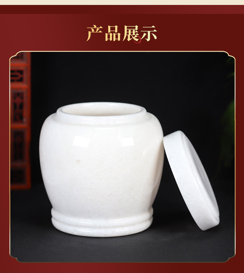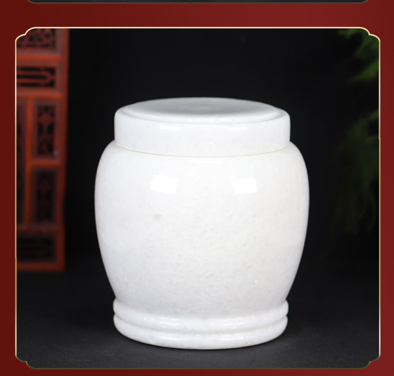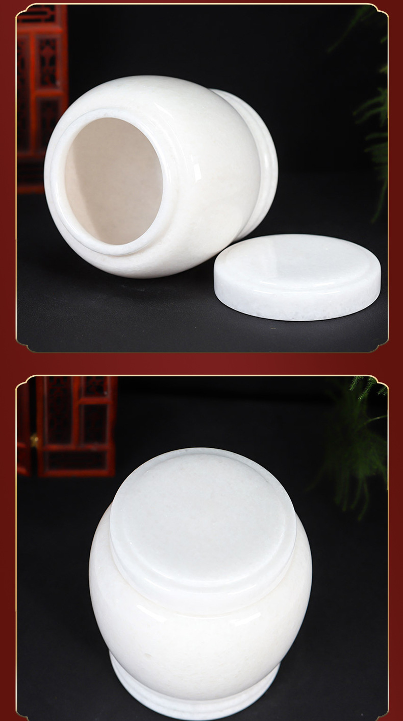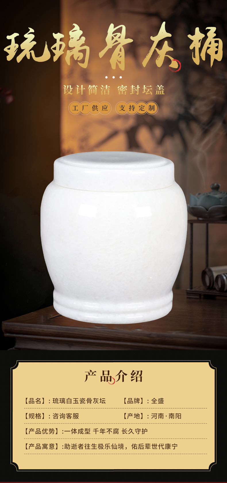 天然玉石白玉瓷琉璃骨灰坛净面骨灰桶22.5*23cm