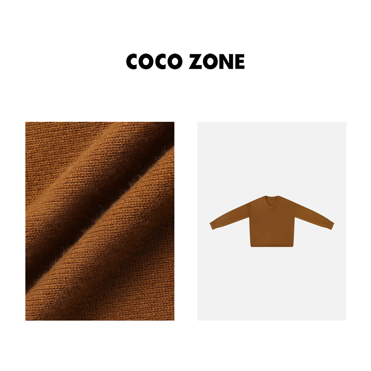 COCO ZONE美拉德V领打底衫螺纹下摆长袖针织衫23C19653