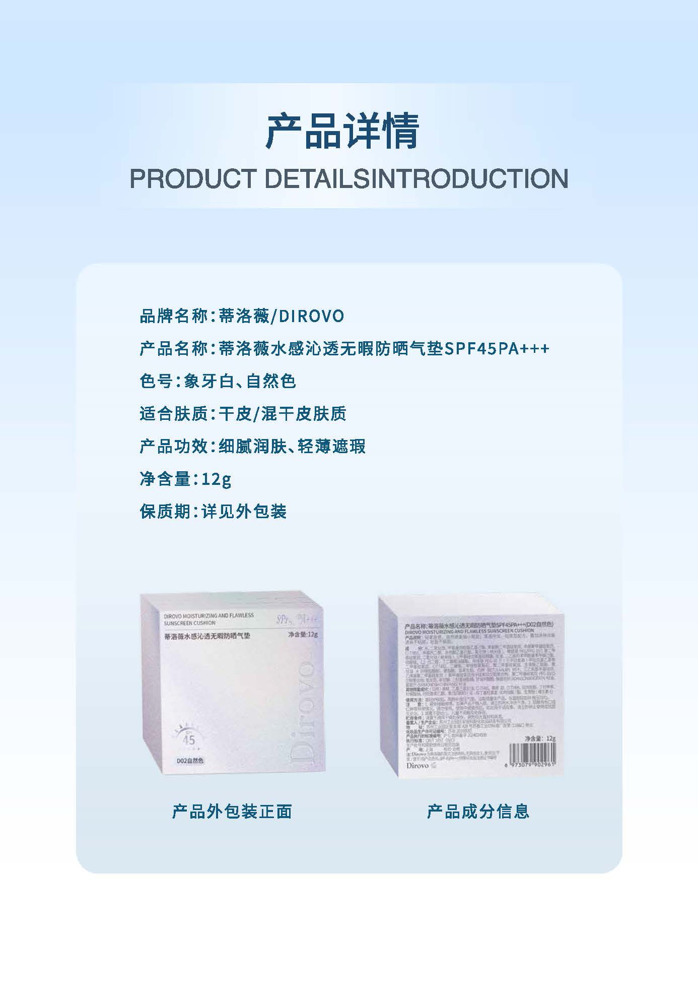 蒂洛薇水感沁透无暇防晒气垫SPF45/PA+++【粉扑颜色随机发】