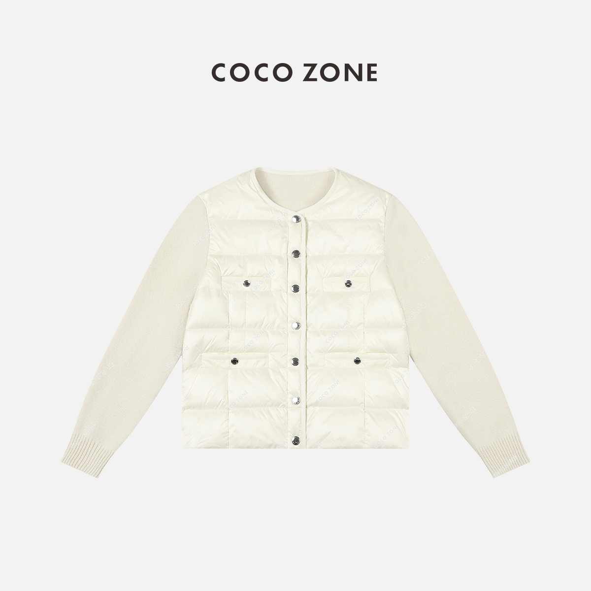 COCO ZONE90鹅绒小香风针织拼接圆领长袖羽绒服 23C29925