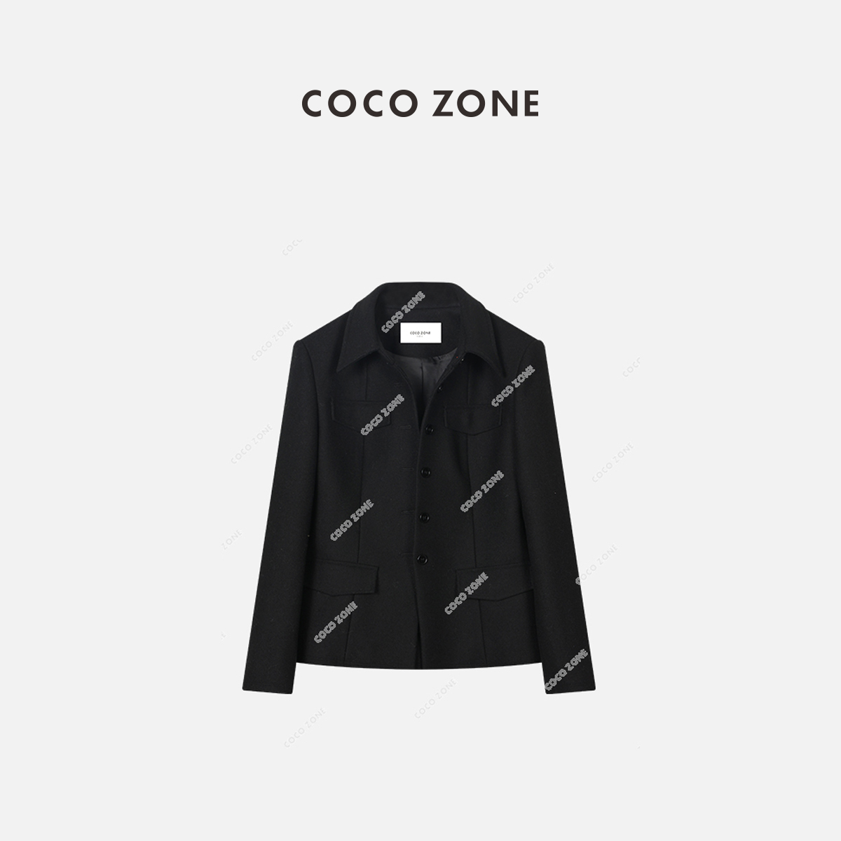 刘一一&COCO ZONE100%羊毛秋款翻领扣毛边长袖西服外套23C29654