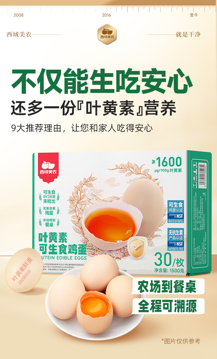 【FX】西域美农五星无抗鸡蛋/叶黄素可生食鸡蛋无抗生素