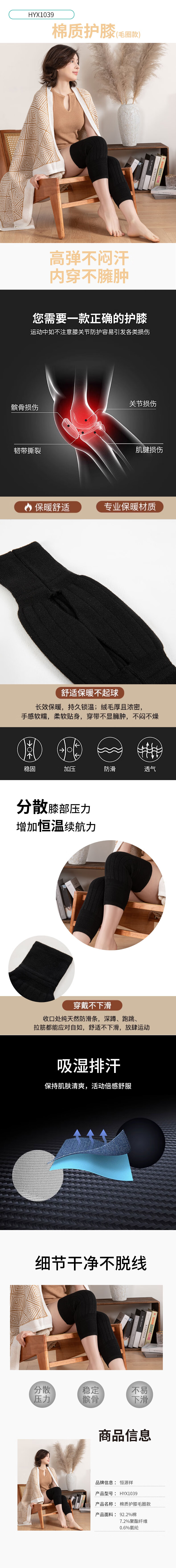 恒源祥 HYX1039 棉质护膝毛圈款 单位:对