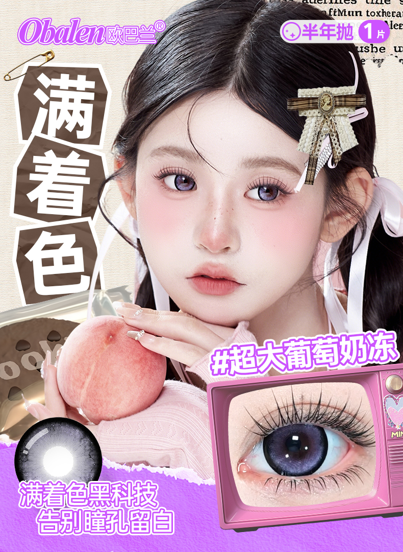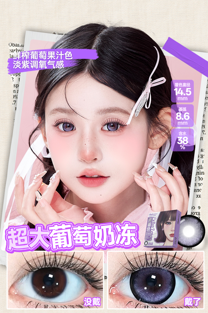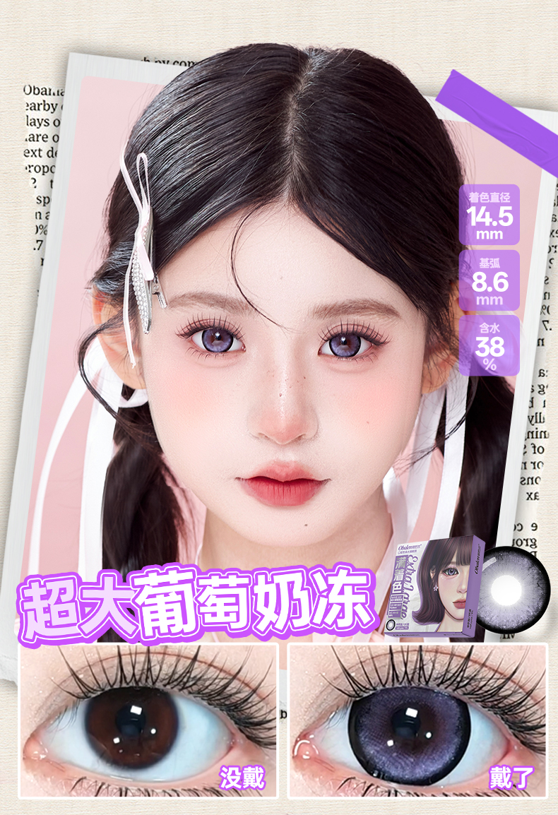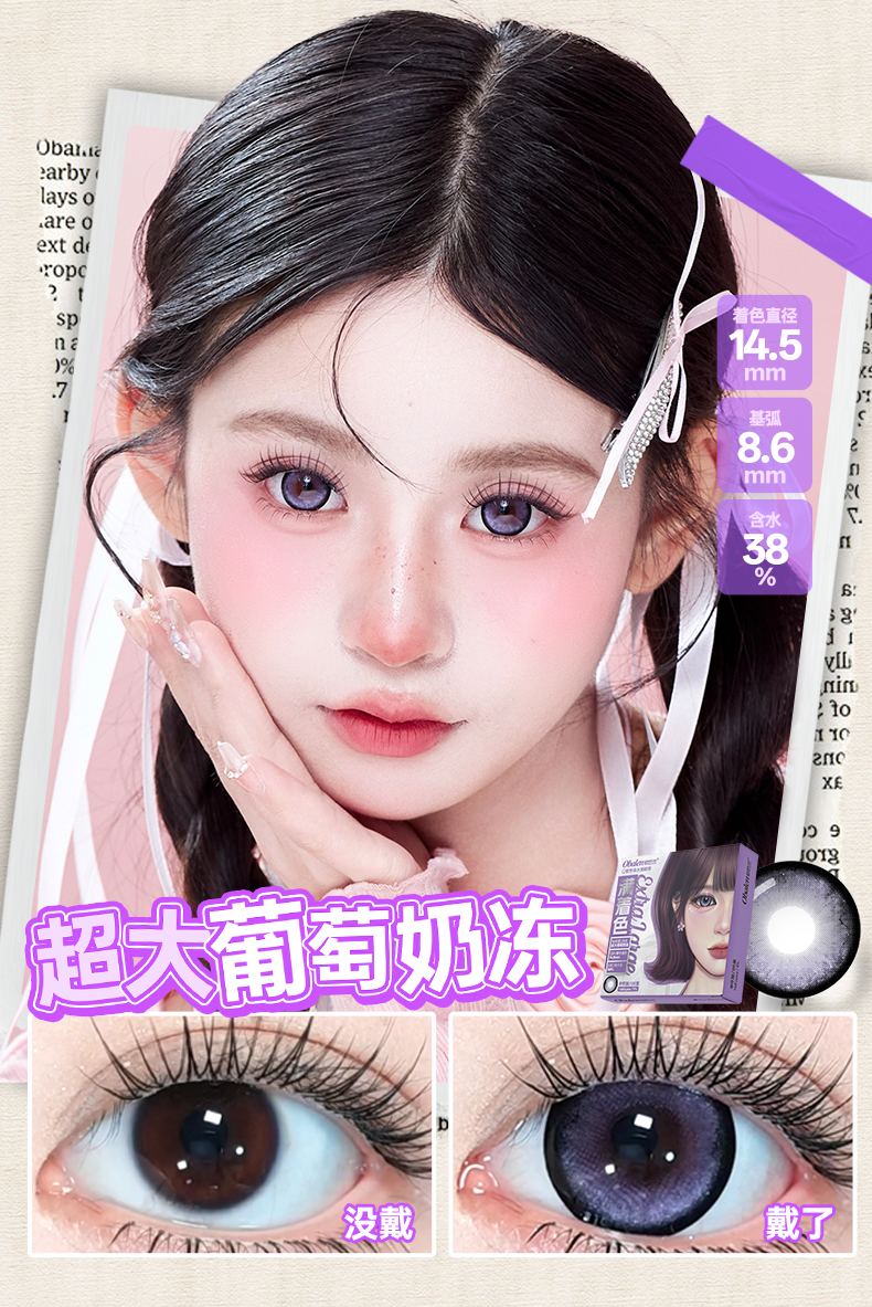 新款满着色系列【超大葡萄奶冻】14.5大直径半年抛美瞳1片装