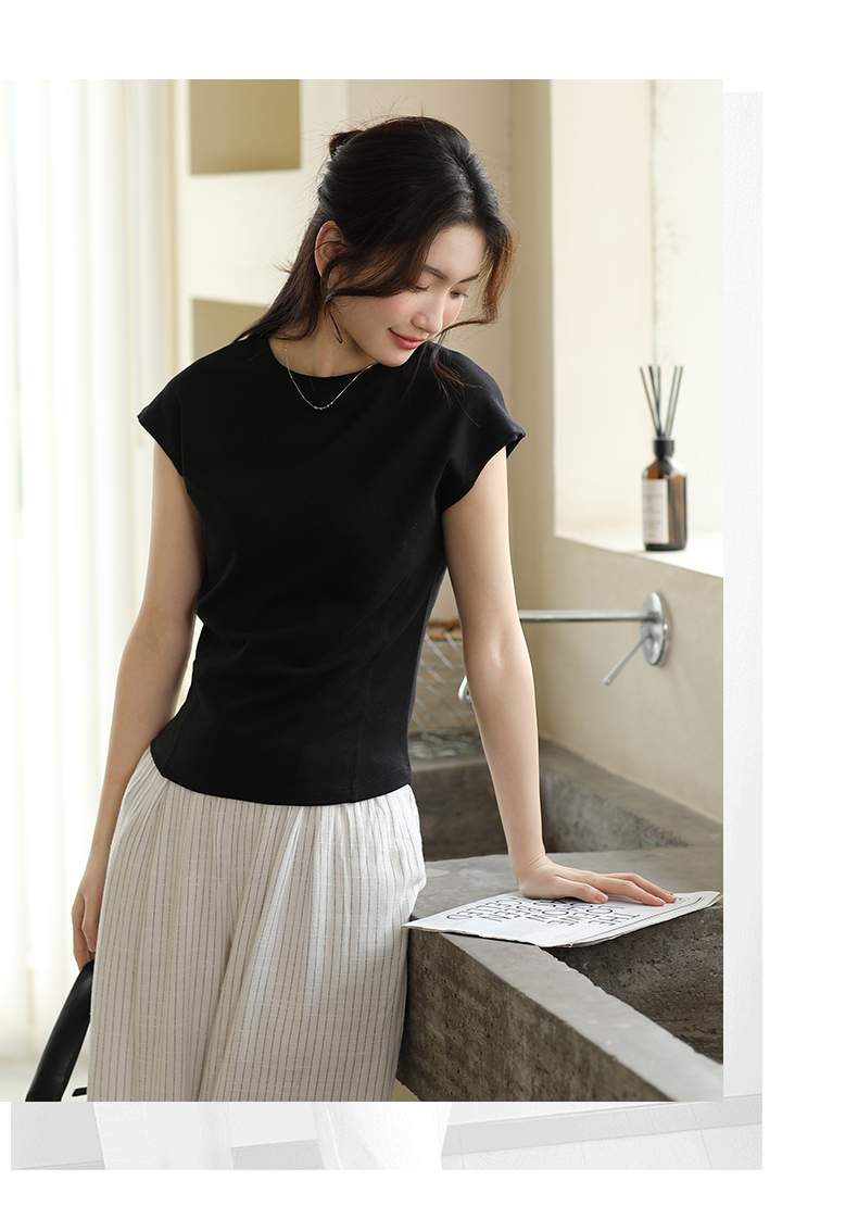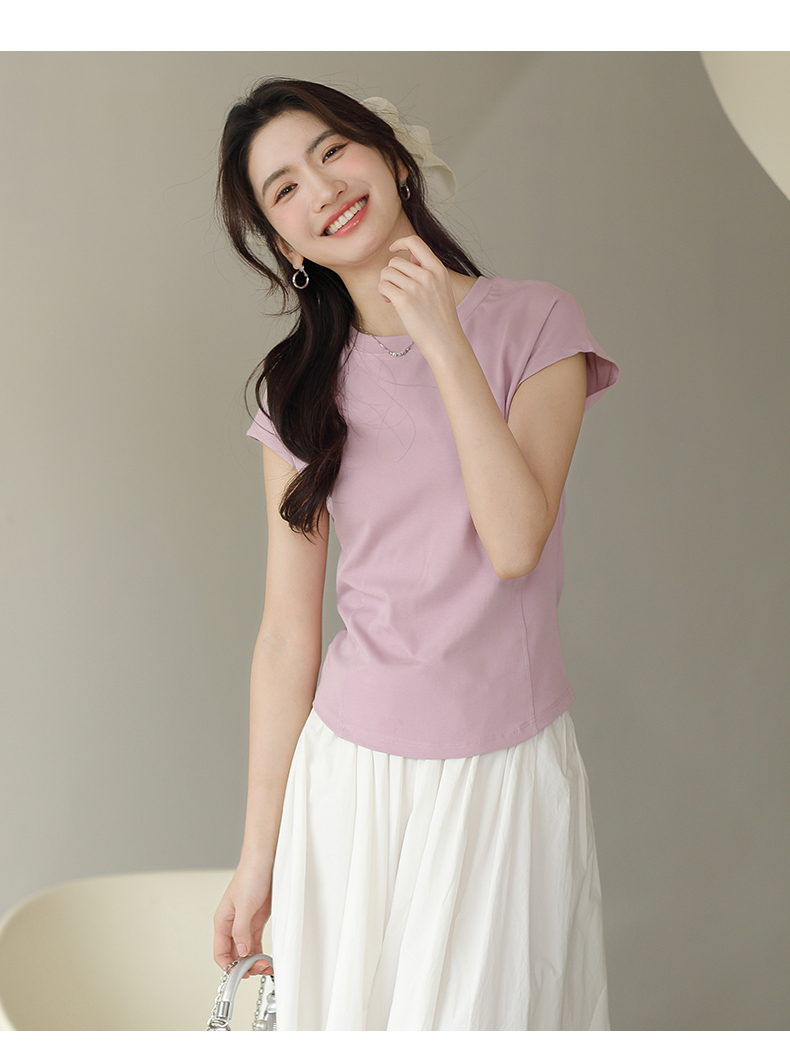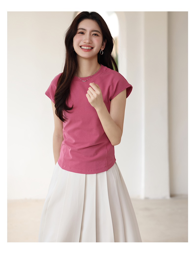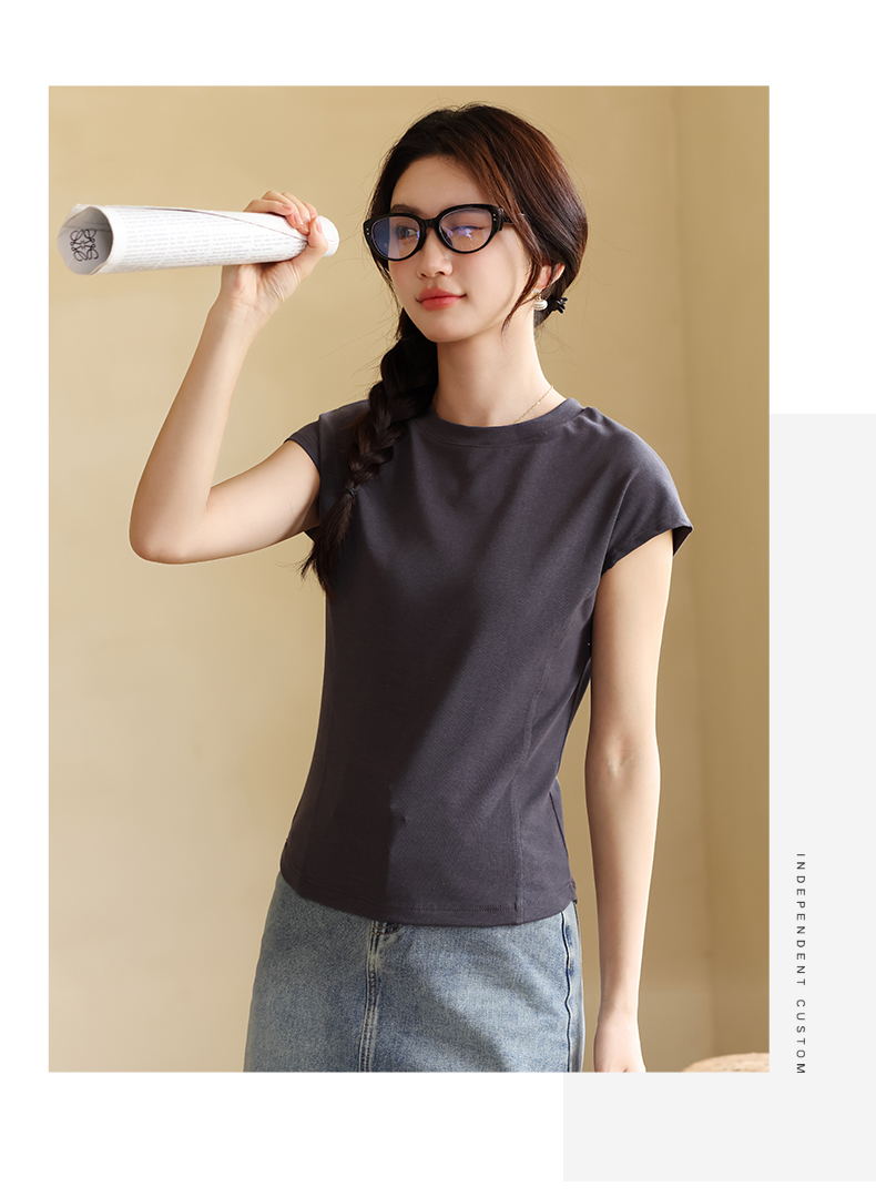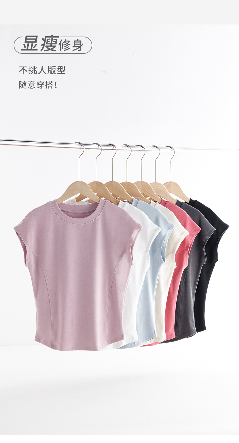 2024夏季圆领修身显瘦短袖T恤女 纯色简约小众连袖舒适上衣【夏日服饰专场】