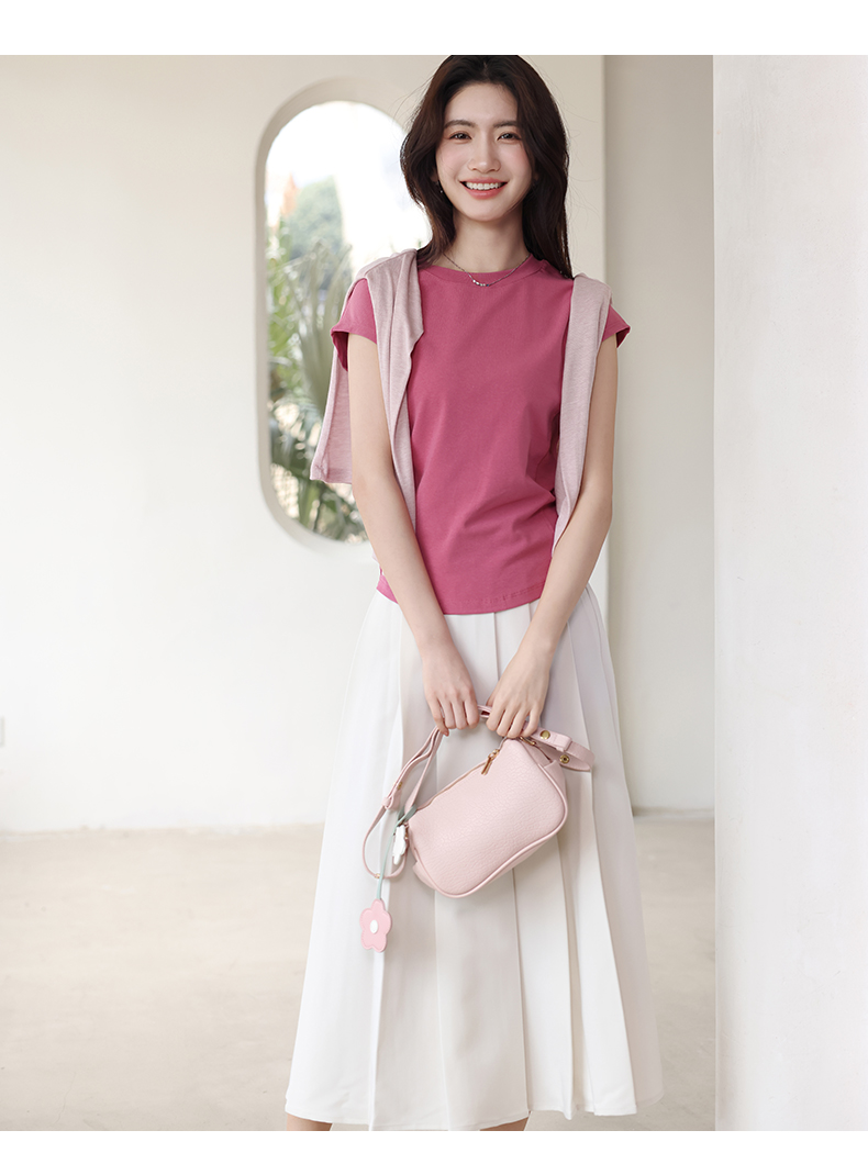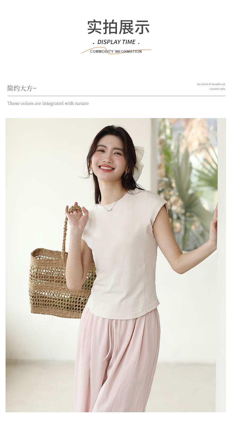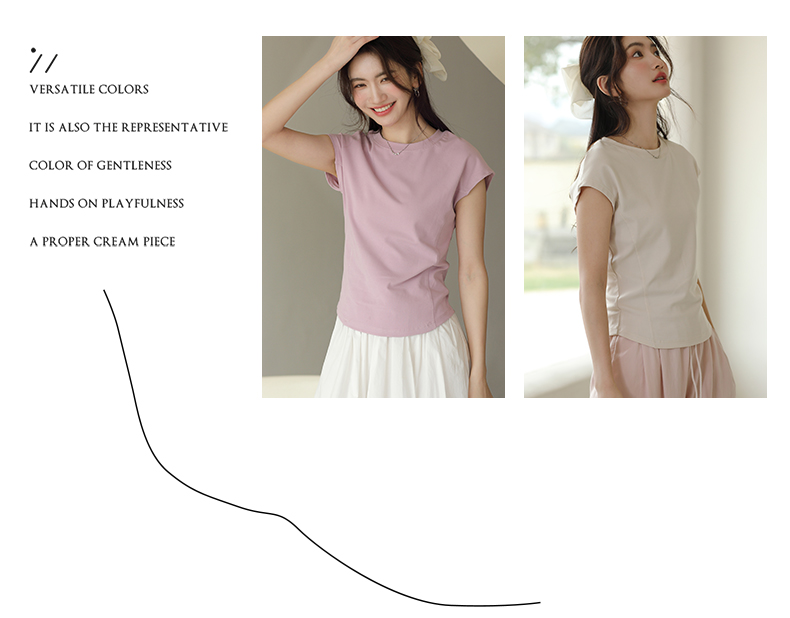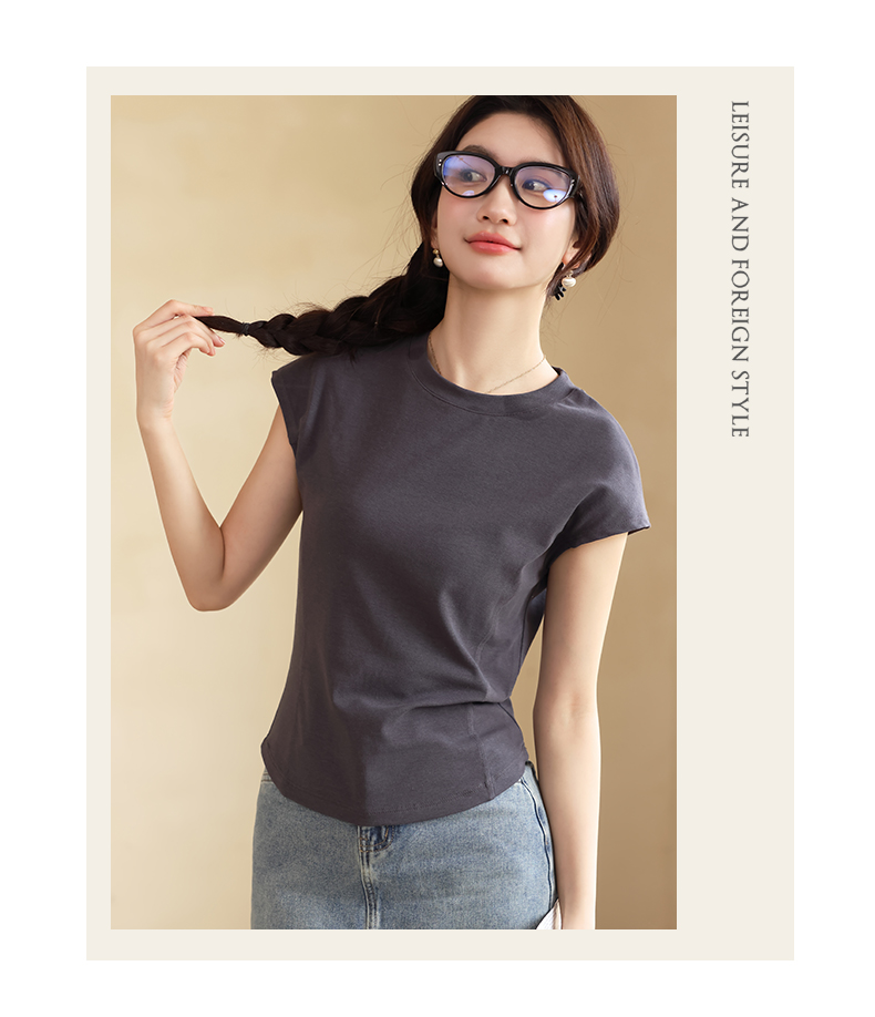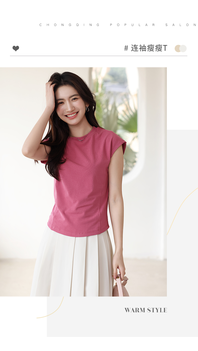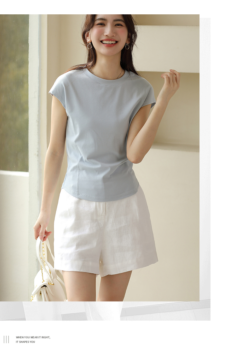 2024夏季圆领修身显瘦短袖T恤女 纯色简约小众连袖舒适上衣【夏日服饰专场】