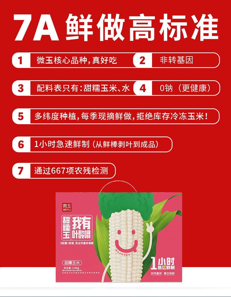 微玉 甜糯玉米礼盒 含叶酸软甜白糯 真空装7A鲜做 非转基因 1.6kg