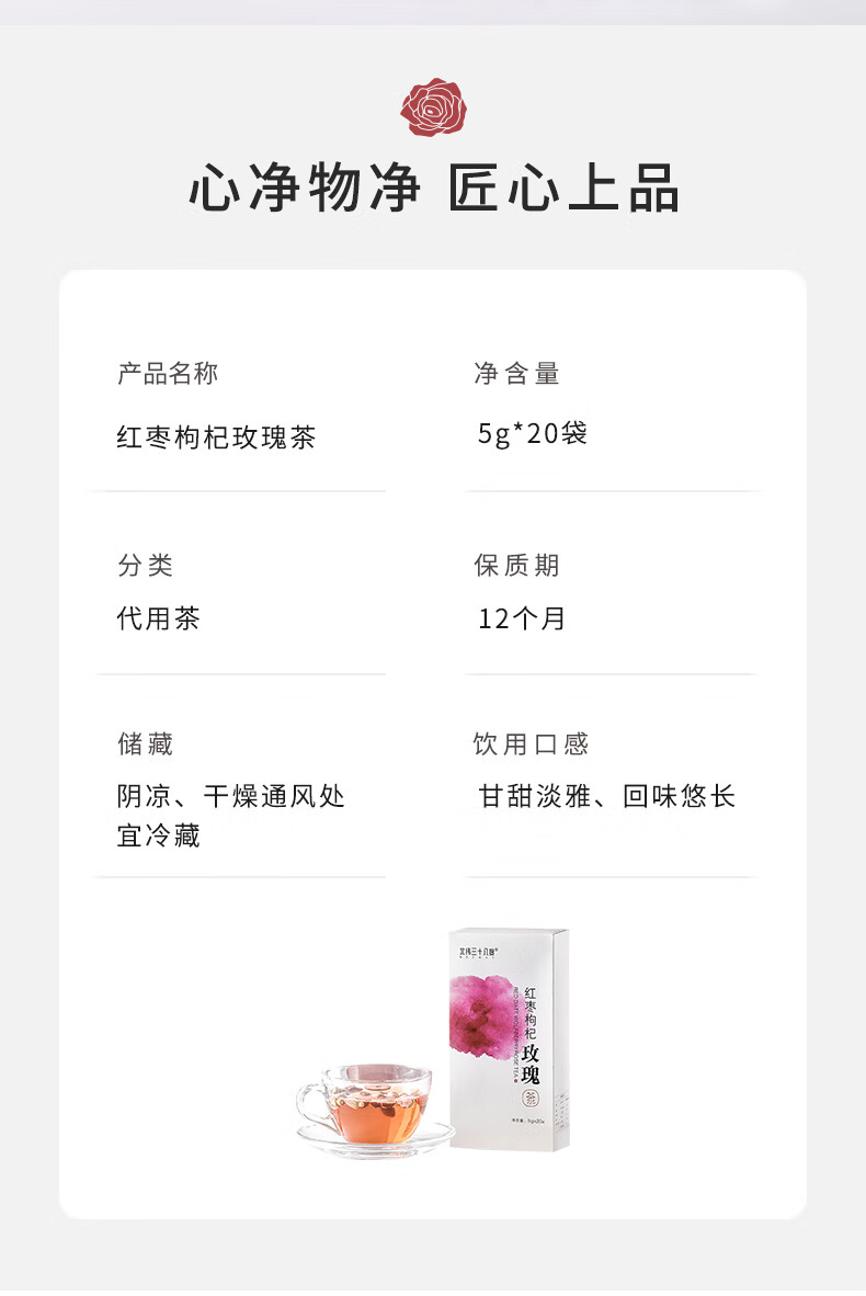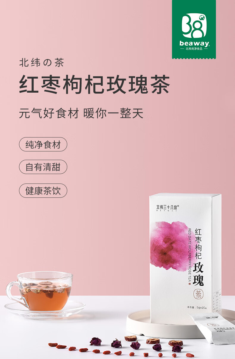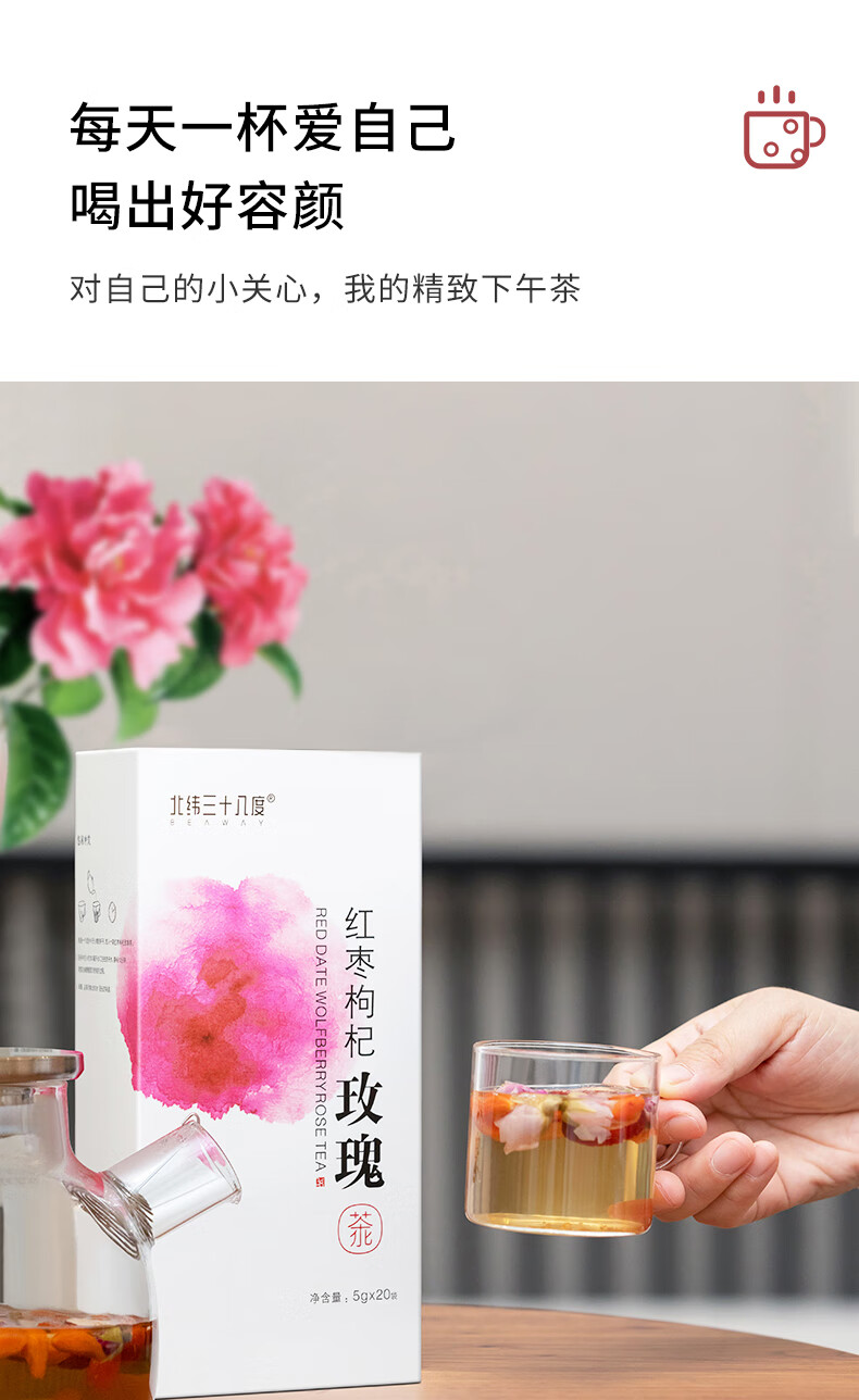 北纬三十八度丨颜若丹红枣枸杞玫瑰茶5g*20