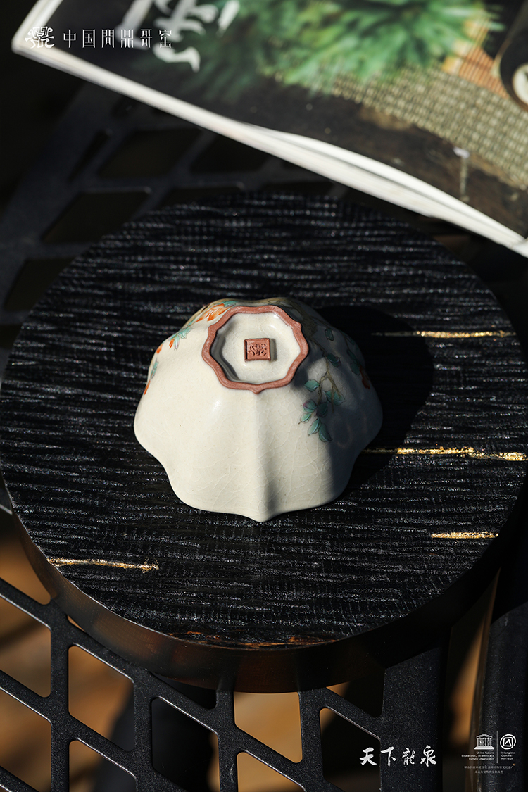 问鼎哥窑碎玉三叶杯(茶雀清吟)