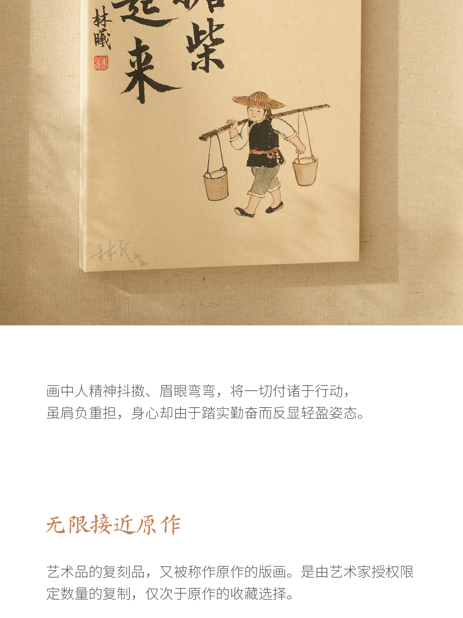 林曦水墨 《挑水担柴 支棱起来》亲笔签名复刻画 限量仅80幅