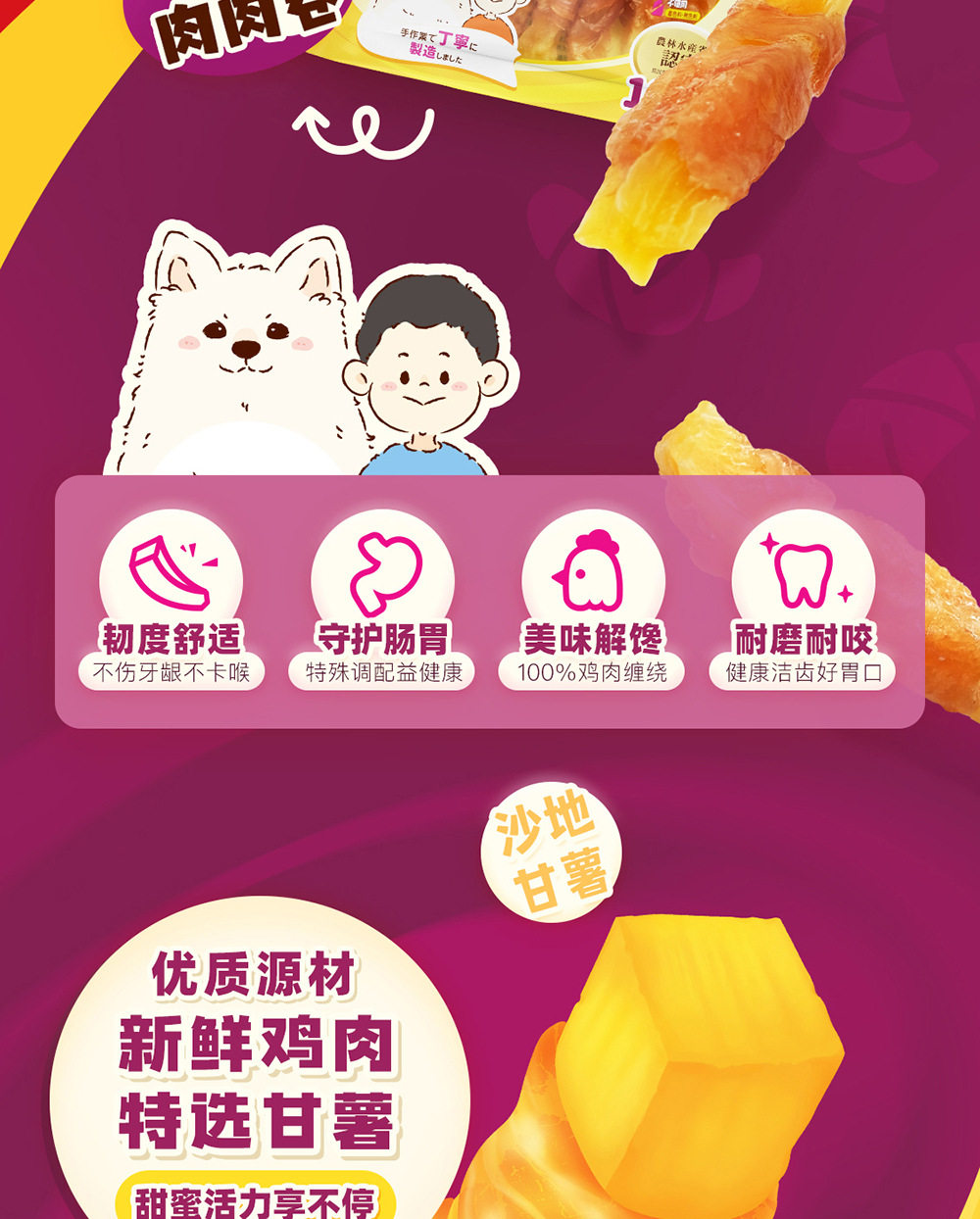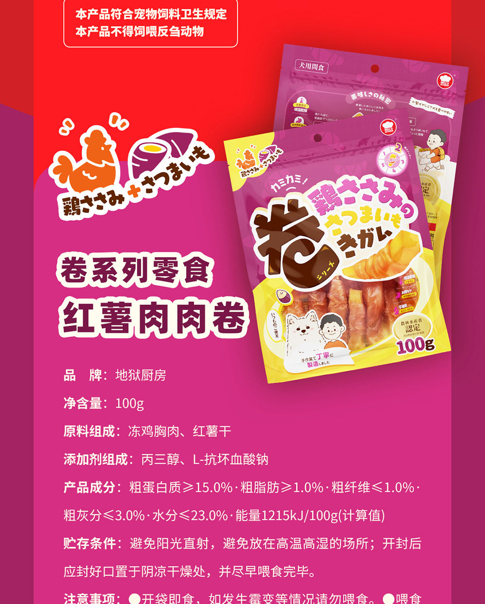 地狱厨房小食厨师犬用鸡肉脆皮卷绕红薯肉排香肠磨牙狗零食