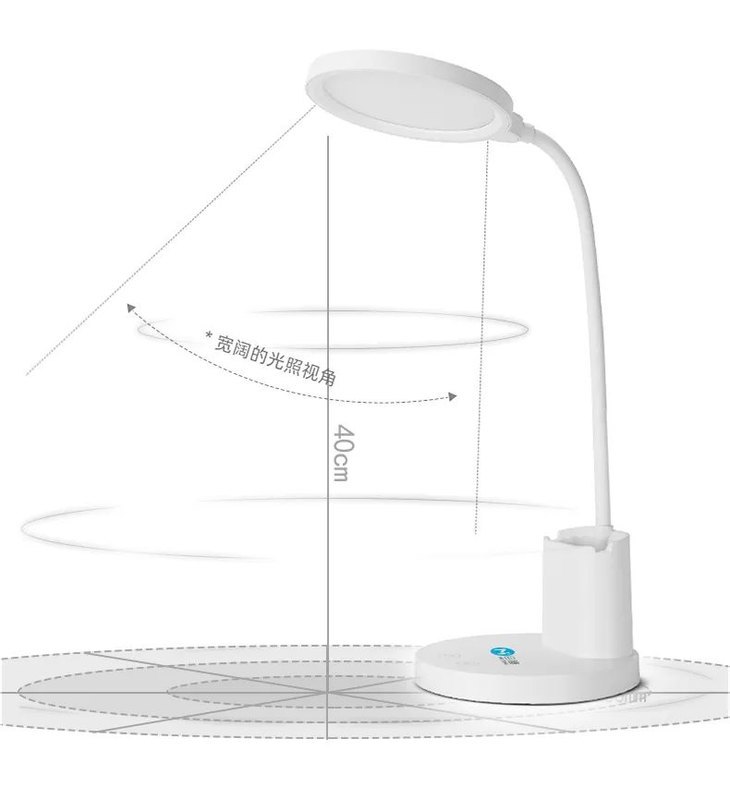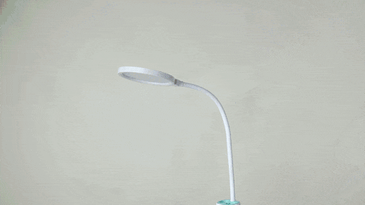 M1台灯采用鹅颈弯管灯臂,可以多角度自由调节,配合家人的身高可上可下,环形灯面也可以360°调整位置。