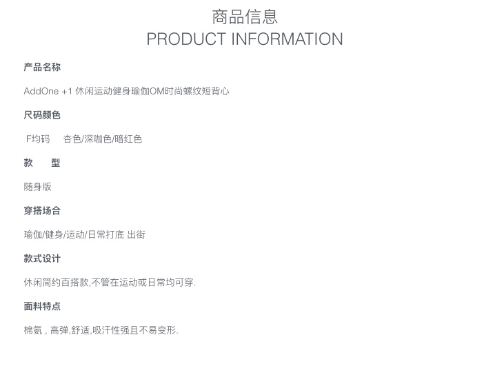 AddOne+1 休闲时尚运动瑜伽亲肤螺纹短背心