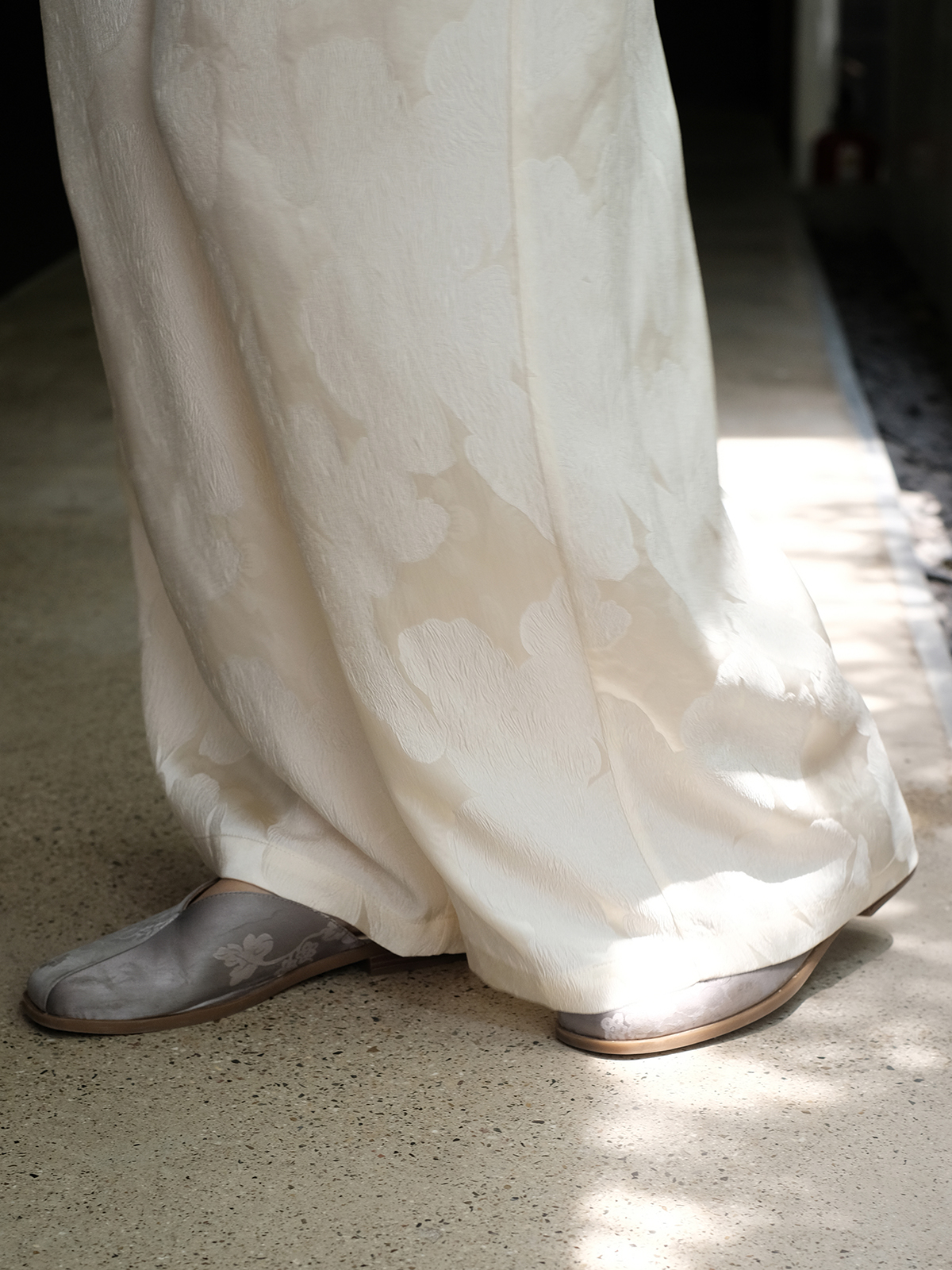 盛唐婧 |纯手工全皮真丝提花半拖鞋-紫灰(特殊商品不退不换)