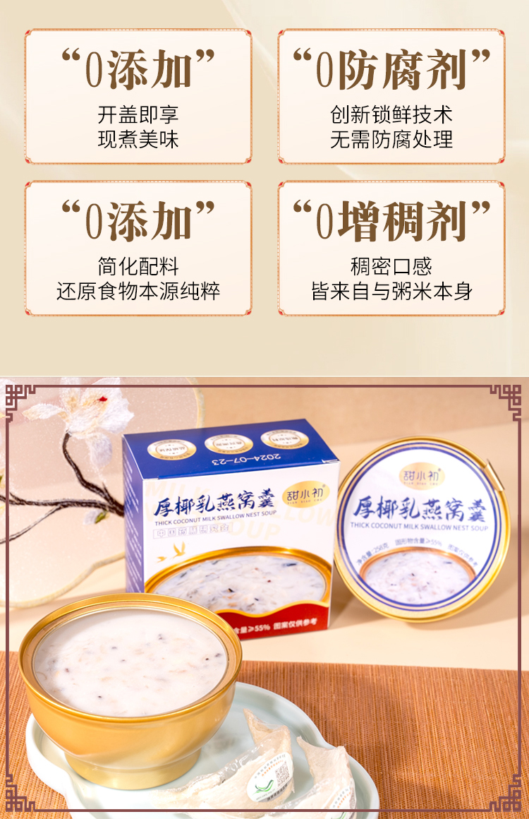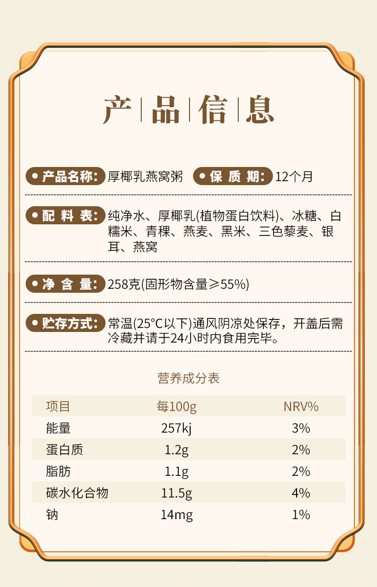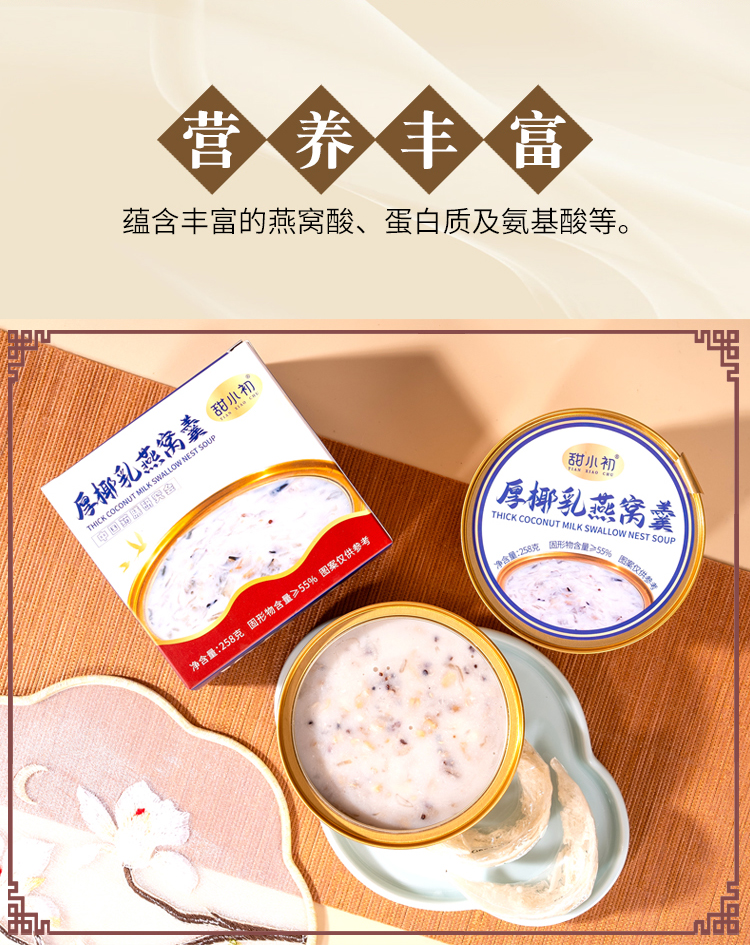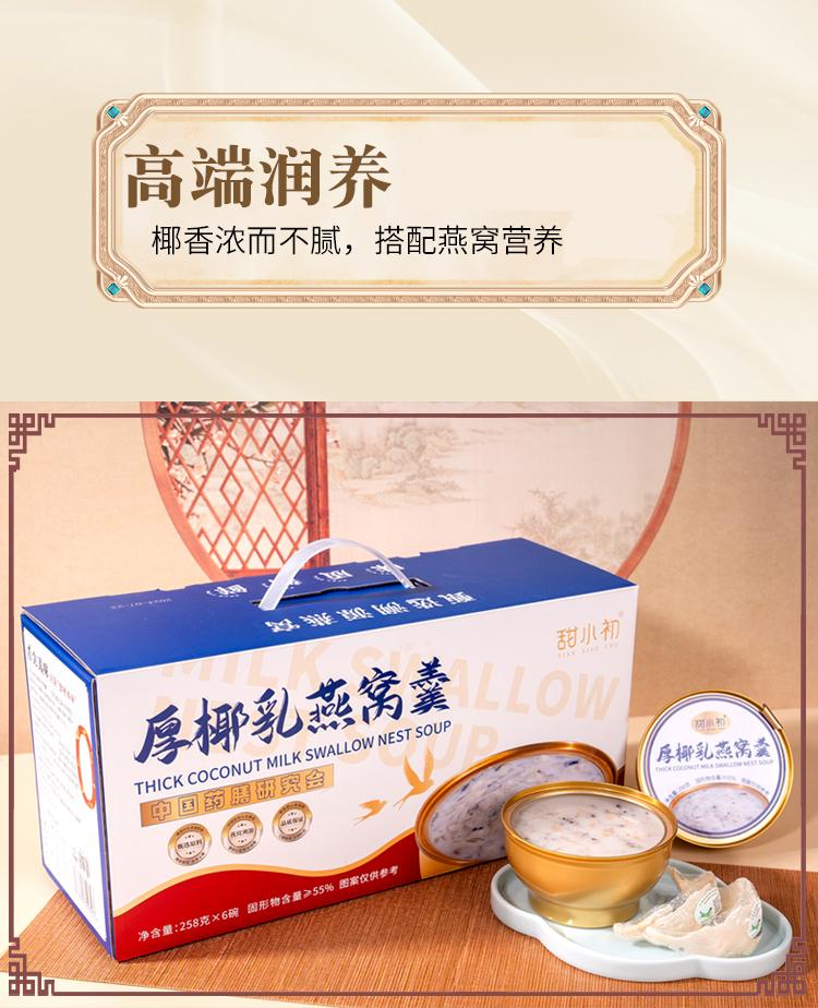 甜小初厚椰乳燕窝粥早餐轻食即食送礼盒258g*6碗/箱