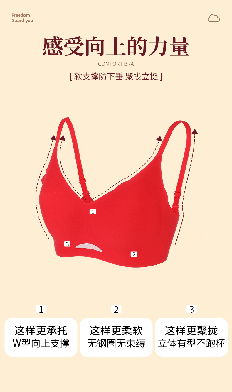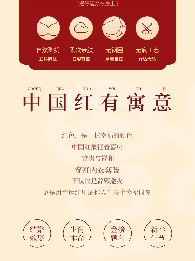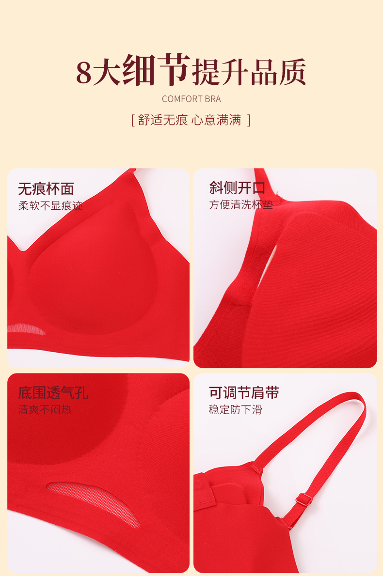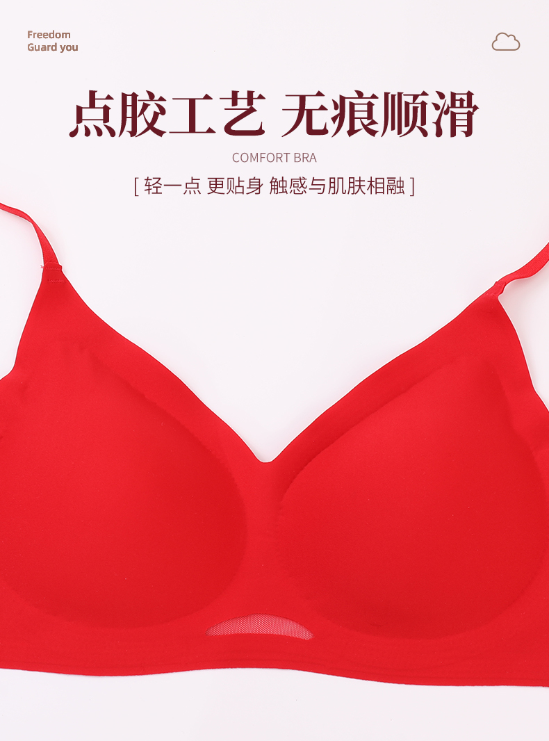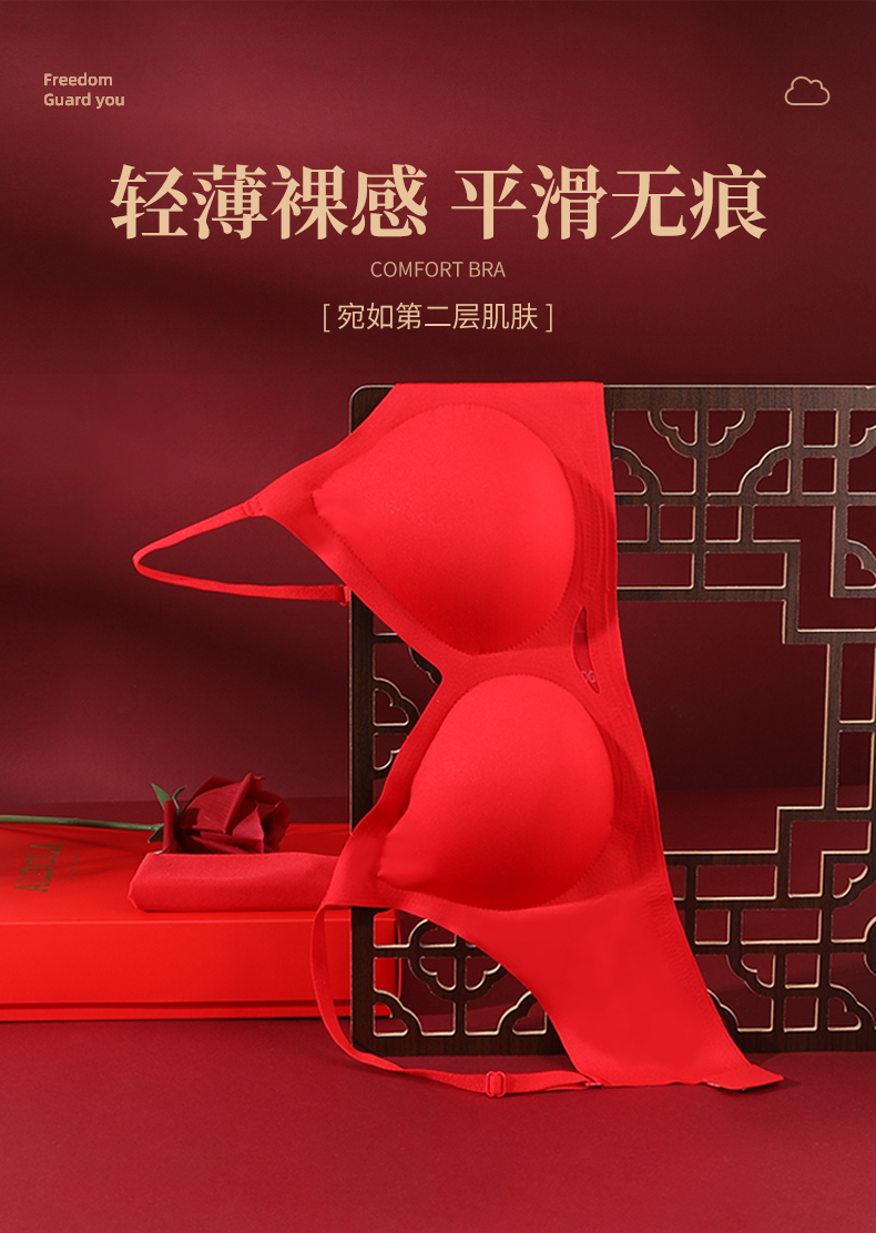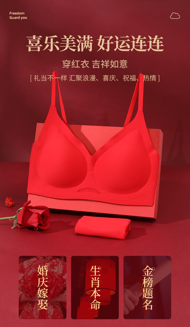 雅黛丽红色本命年内衣套装女兔年结婚新娘内裤无痕薄款文胸礼盒装