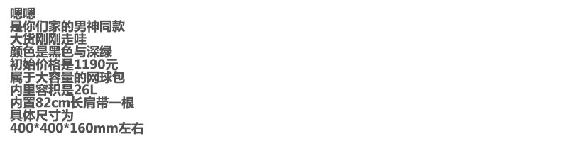 运动网球背包,26L大容量设计。老钱风长肩带情侣款单肩包E032866
