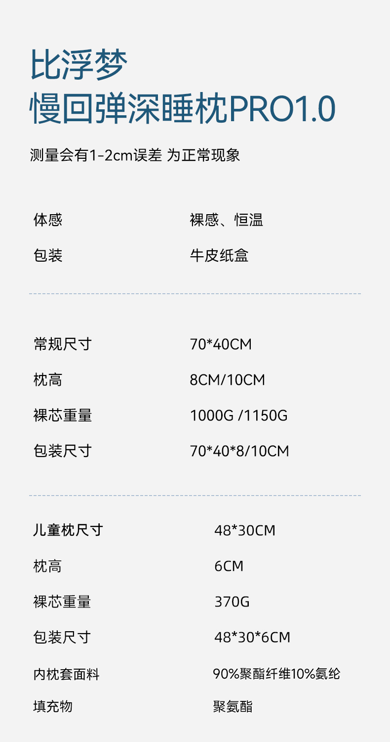 慢回弹记忆枕 · 【比浮梦】慢回弹深睡枕PRO1.0 三种高度任意选择 儿童与成人|品牌直发