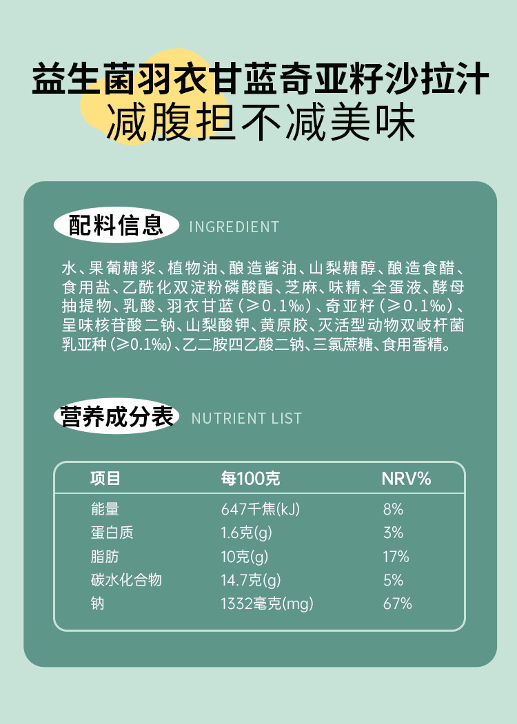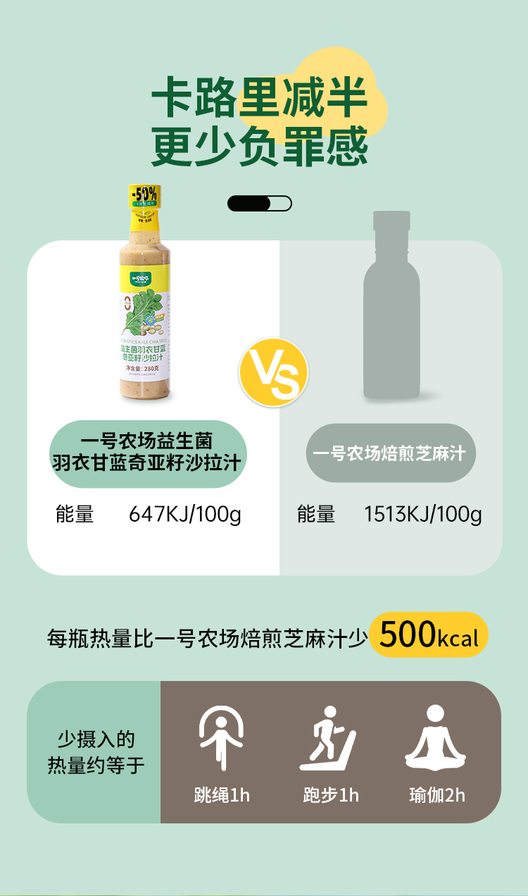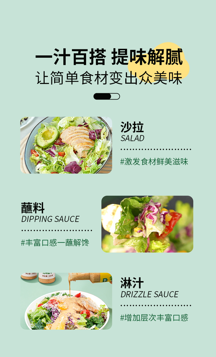 一号农场益生菌0蔗糖沙拉汁蔬菜水果专用羽衣甘蓝奇亚籽焙煎芝麻味