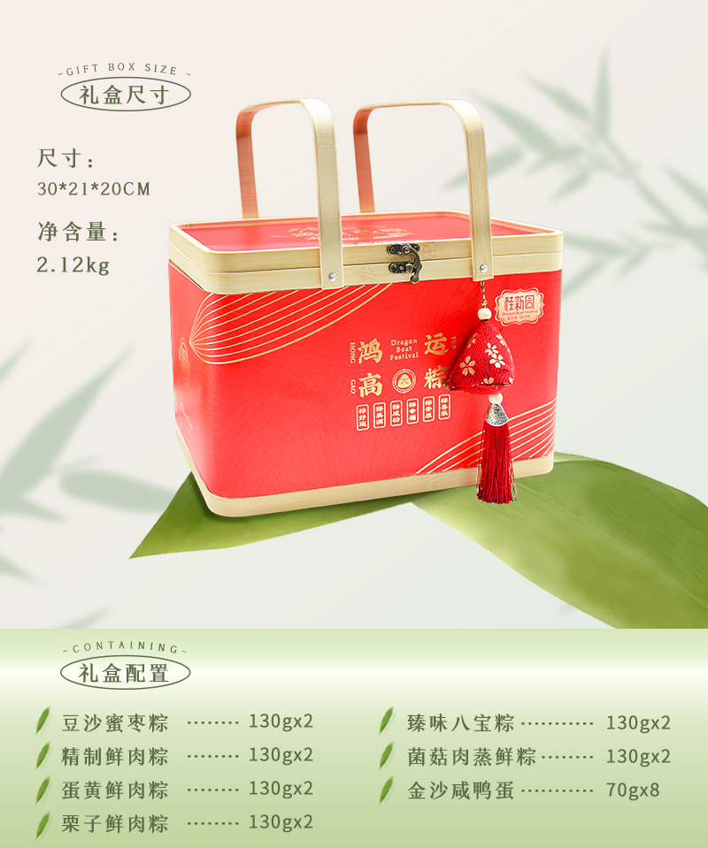 【鸿运高粽】端午家乡粽—12粽6味+8枚咸鸭蛋
