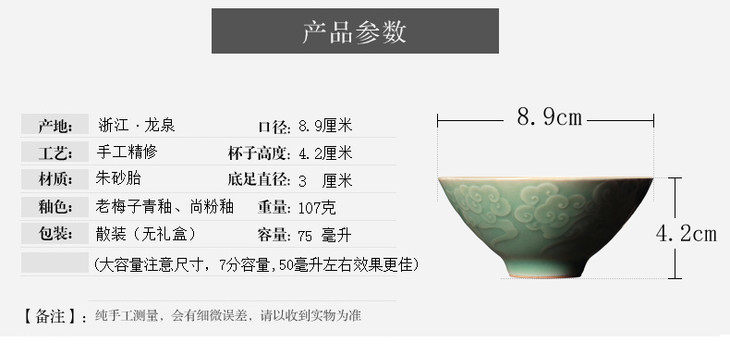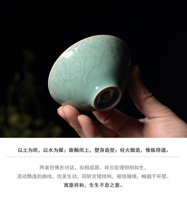 尚唐丨龙泉青瓷 云漫斗笠对杯 70ml