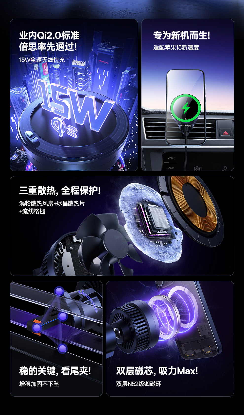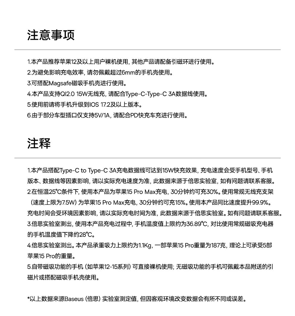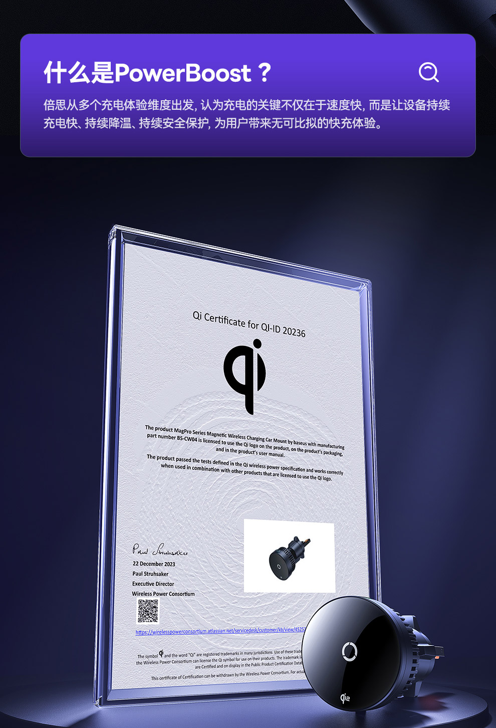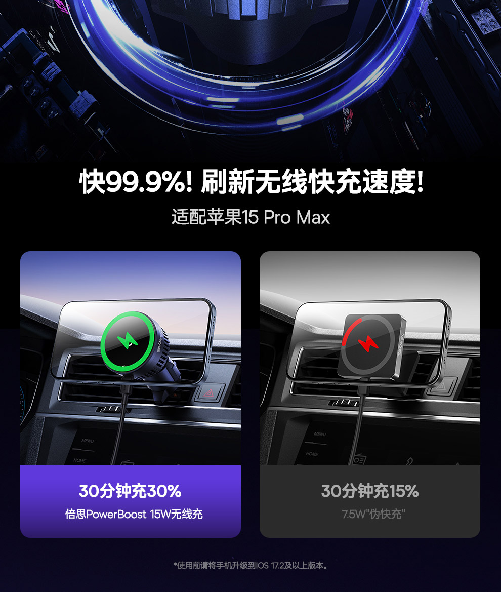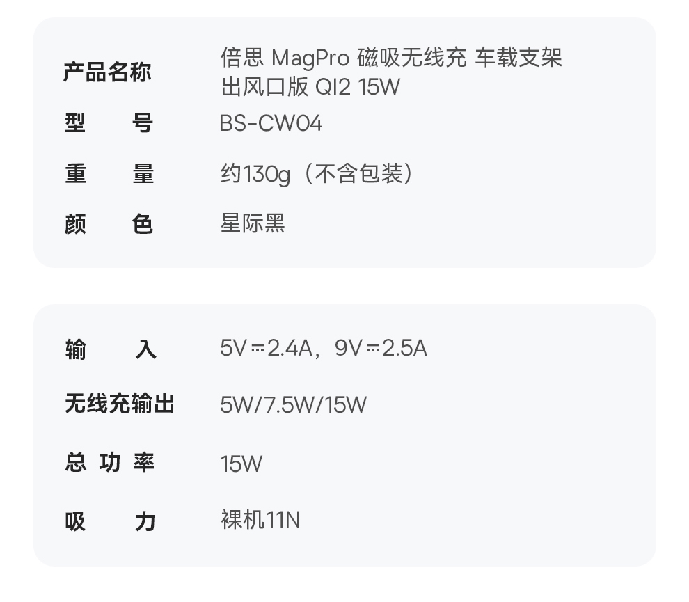 倍思 MagPro 磁吸无线充 车载支架 出风口版 QI2.0 15W