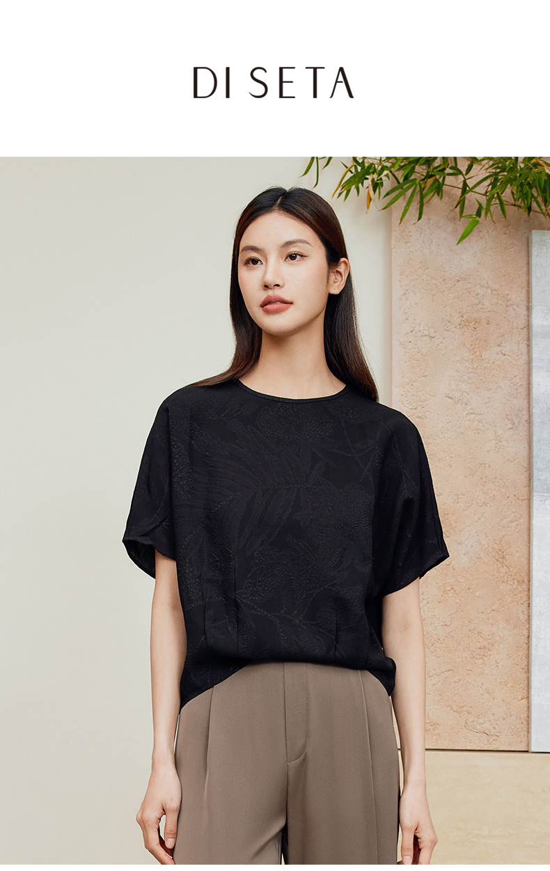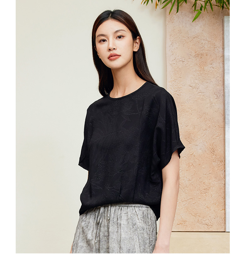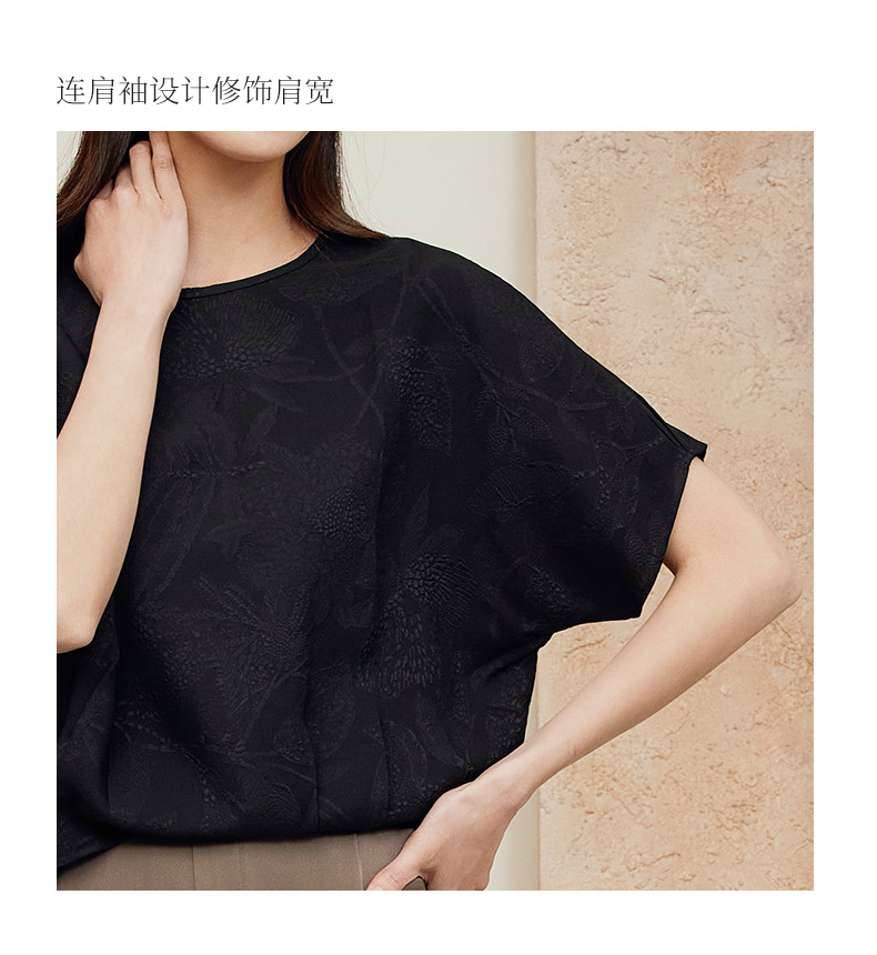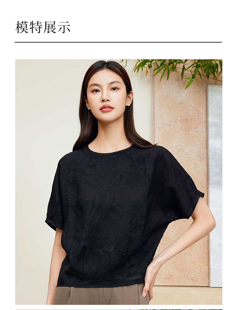 玳莎真丝连肩袖小衫女2024新款夏季宽松设计感小众桑波缎圆领上衣 EB31203