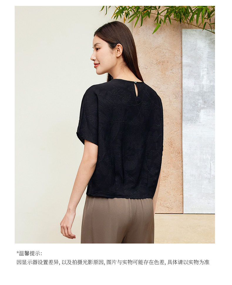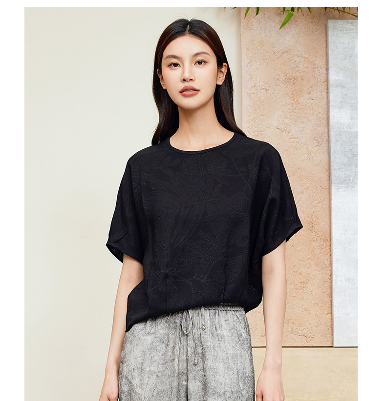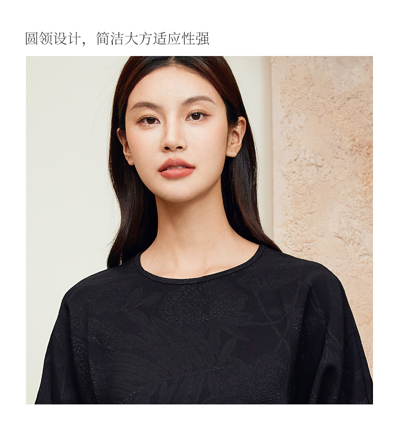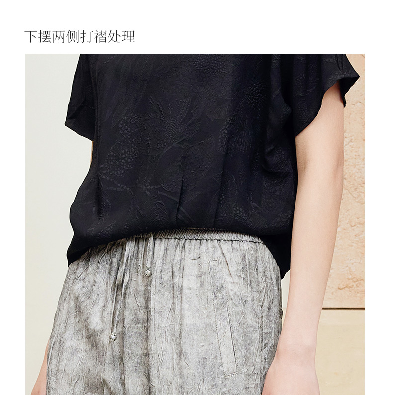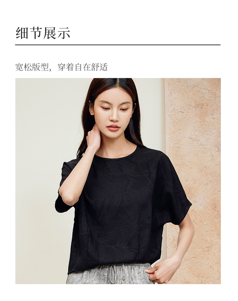 玳莎真丝连肩袖小衫女2024新款夏季宽松设计感小众桑波缎圆领上衣 EB31203