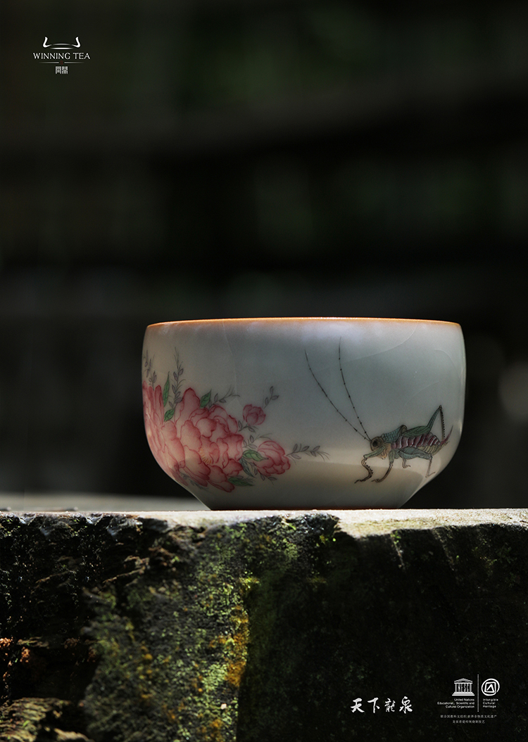 龙泉问鼎彩绘哥窑集玉杯(生机勃勃)
