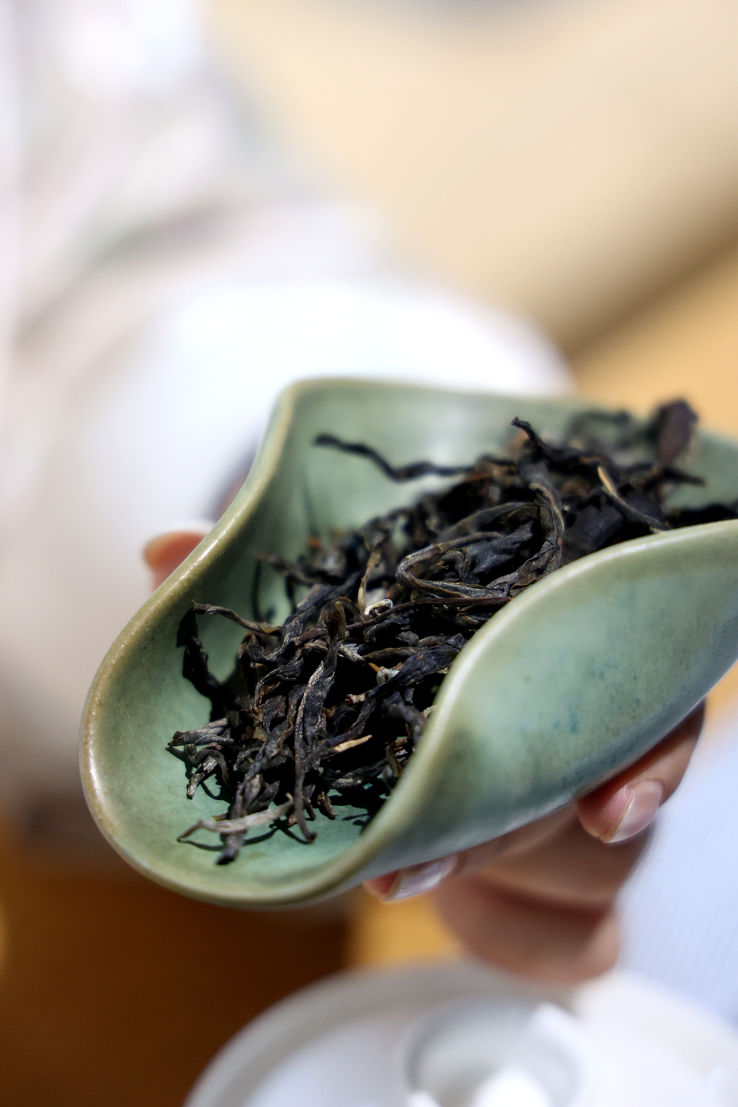 图1:干茶展示条索紧结细长,墨绿油润,白毫显露。这是头春茶特有的鲜活感。