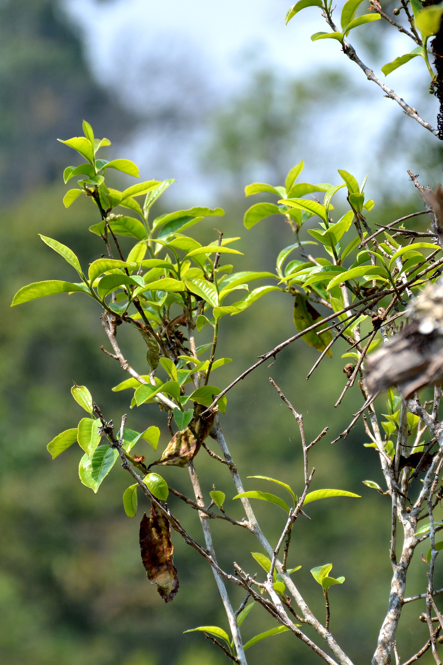 茶树不是整齐排列的,而是高低错落,如园林造景。有的茶树直立展壁,有的树冠如伞,有的扭曲盘转,形态各异。