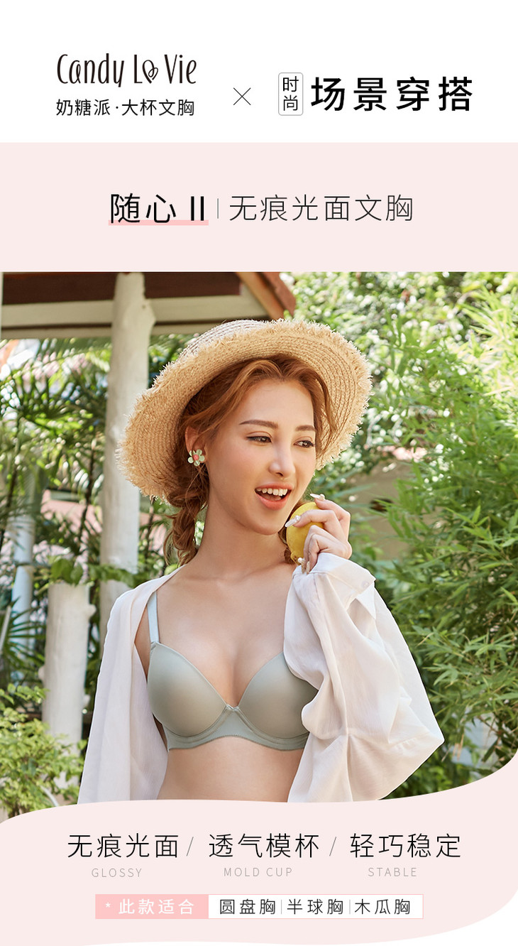奶糖派随心玫瑰烟色无痕模杯大胸内衣
