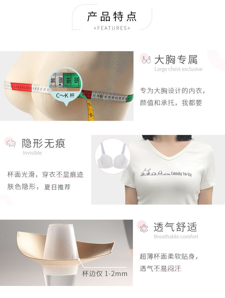 奶糖派大罩杯时光机奶油肤色上托包容稳定侧收舒适秋女大码内衣