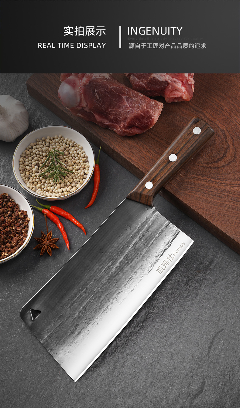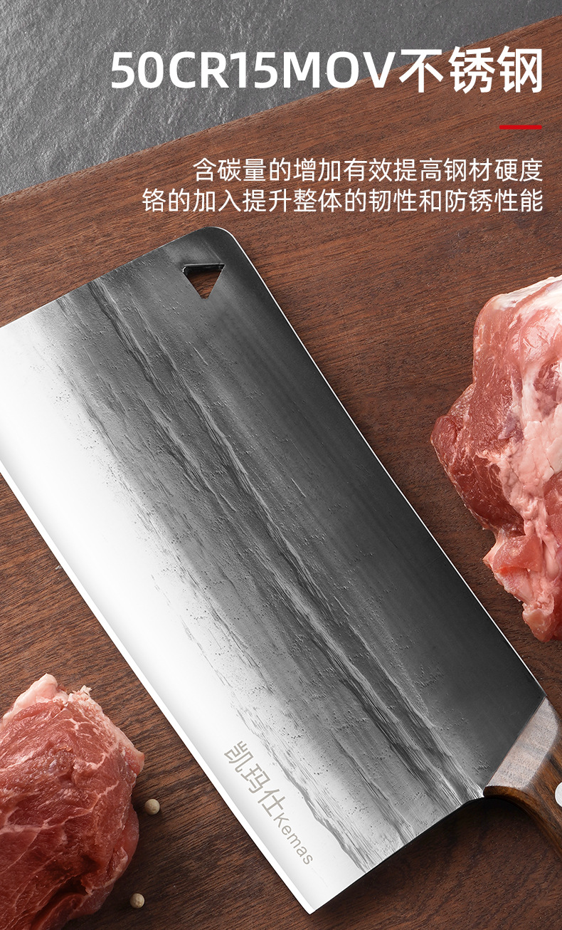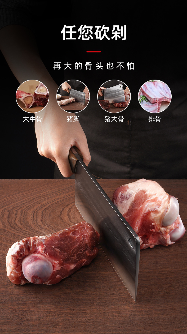 【传统匠心工艺!锤纹锻打砍骨刀】手工制作,锋利不崩口,加厚大刀身,让砍骨更轻松给力,中式两用刀不锈钢超锋利厨房刀L